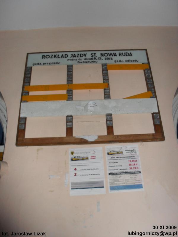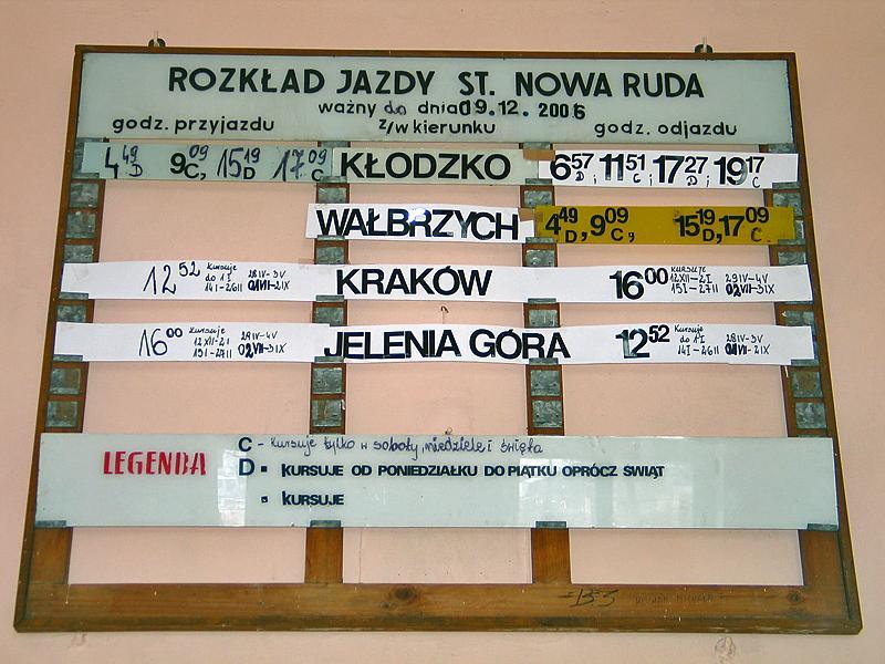 Stacja Nowa Ruda, pozostałości po rozkładzie jazdy.