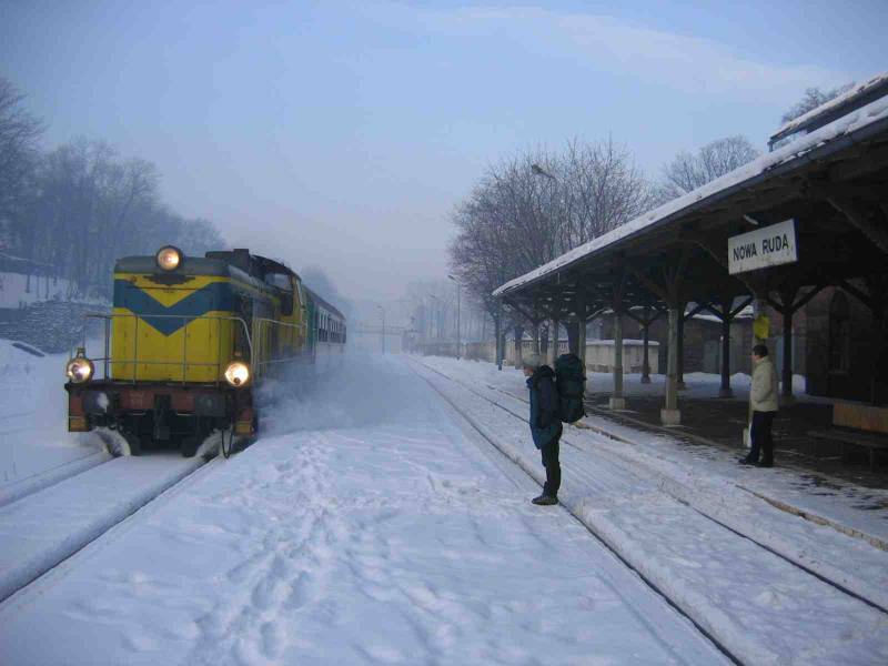 Pociąg relacji Jelenia Góra - Kraków na stacji Nowa Ruda. Prawdopodobnie jeden z ostatnich przejazdów pociągu osobowego na tej trasie... Tylko do końca wakacji. A wraz z nowym rozkładem jazdy "Śnieżka" będzie kursowała przez Wrocław. Szkoda tej pięknej trasy... Widok w kierunku zachodnim: Ścinawka Średnia/Kłodzko/Jelenia Góra.
