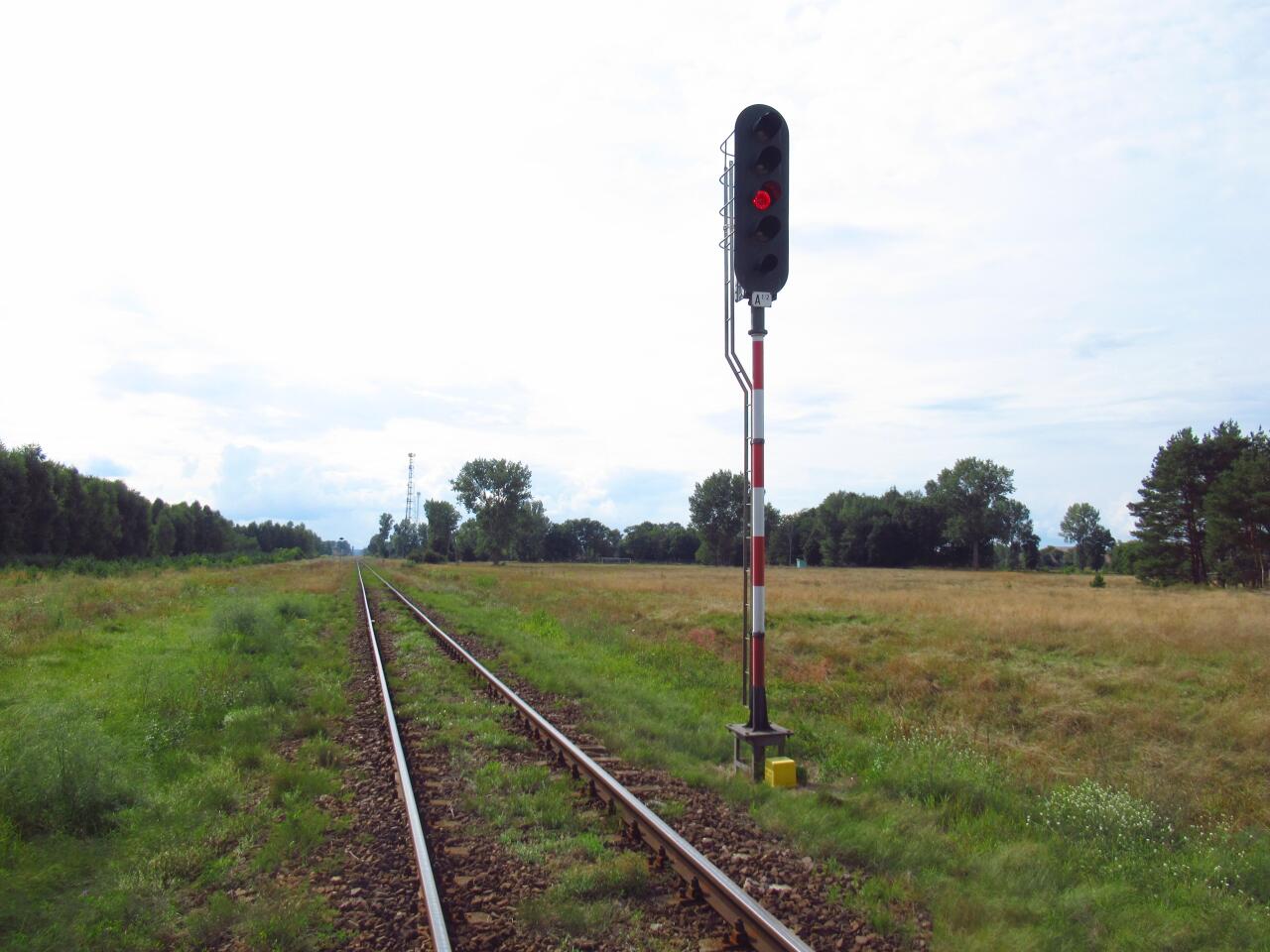 Semafor wjazdowy od strony Starego Raduszca/Czerwieńska. Widok w kierunku zachodnim.