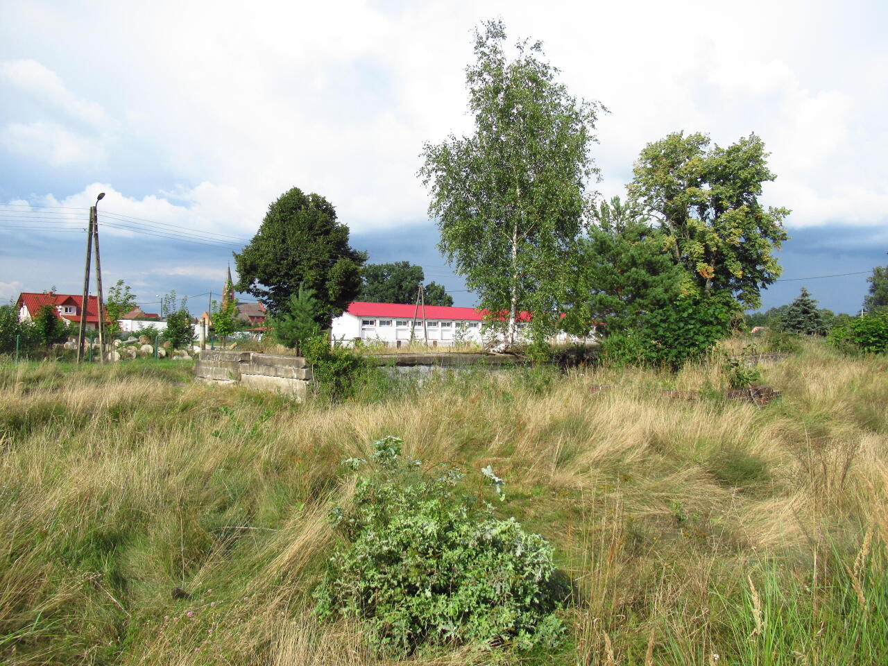 Odcięta od sieci rampa. Widok z równi stacyjnej w kierunku wschodnim. W tle opuszczony budynek dworca.