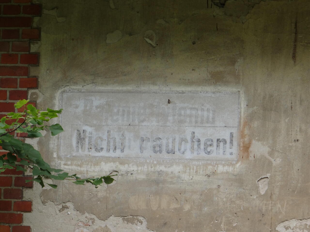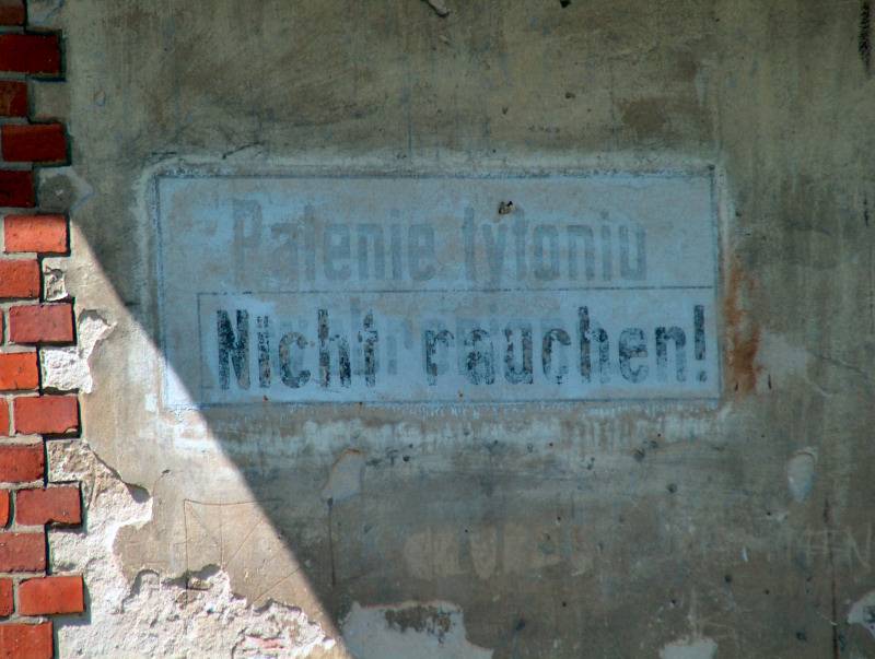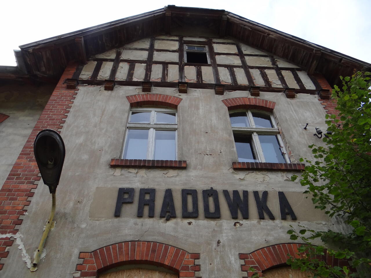 NA budynku magazynowym w Prądówce, który przylega do obiektu dworca kolejowego, do dzisiaj widnieje napis w języku polskim i niemieckim. Jak widać, niemiecka farba była lepsza, gdyż bardziej przebija się, niż napis wymalowany w języku polskim po 1945 roku.