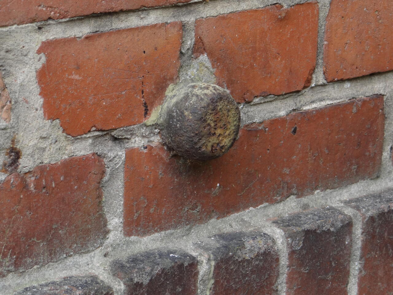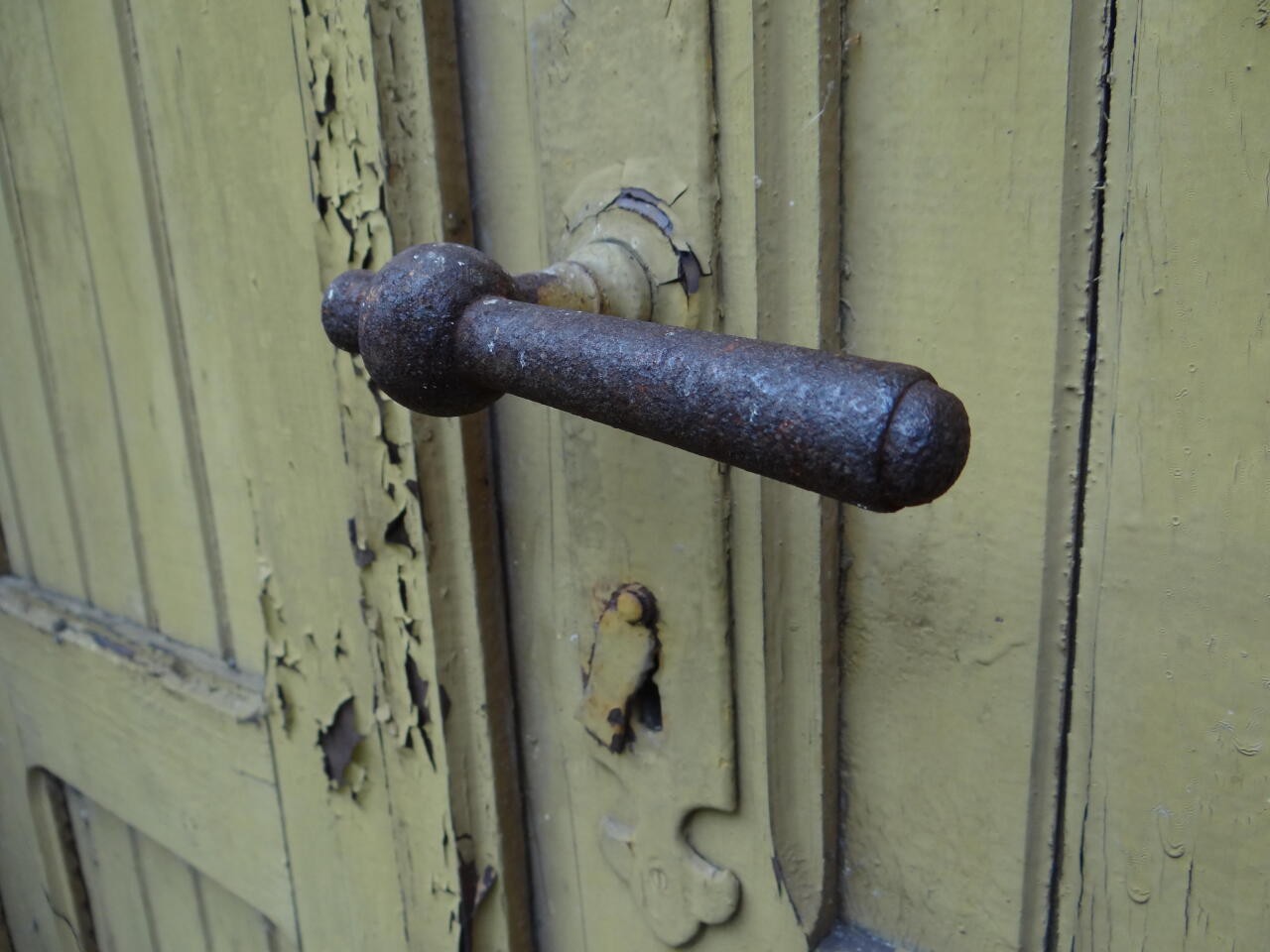 Klamka na wejściu do budynku dworca kolejowego od strony torowiska. Od bardzo dawna nieużytkowana.