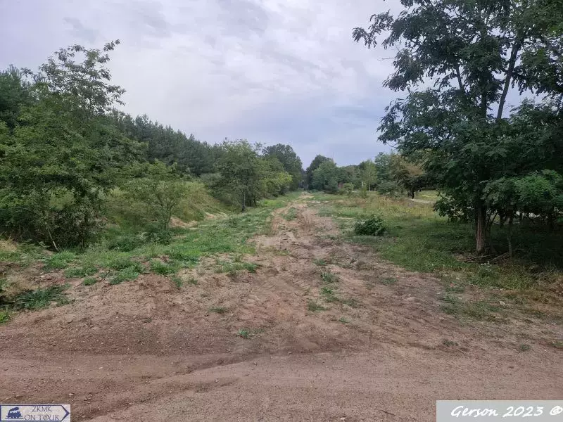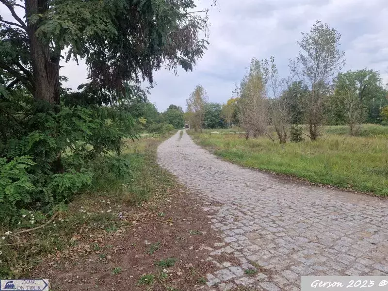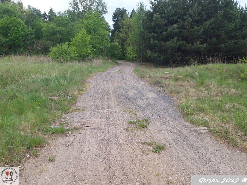 Pozostałości przejazdu kolejowego na drodze prowadzącej z placu składowego do Kijowic. W lewo Skwierzyna, w prawo Drezdenko.