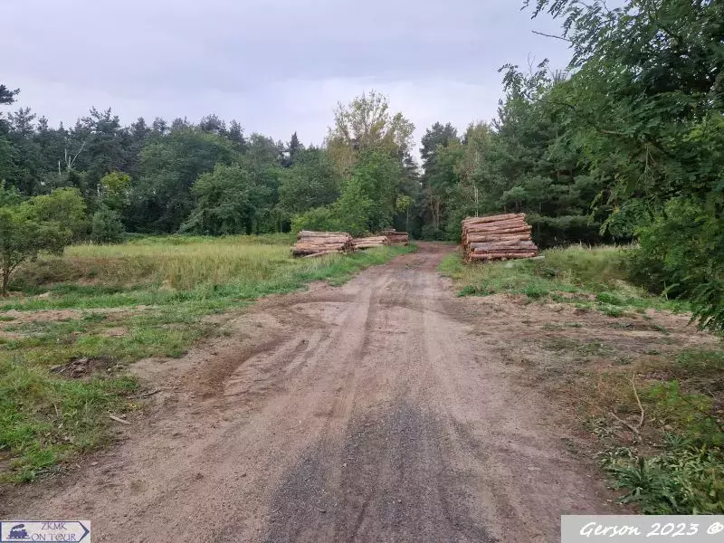 Miejsce, w którym znajdował się przejazd kolejowy,na drodze prowadzącej do lasu. W lewo Skwierzyna, w prawo Stare Bielice.