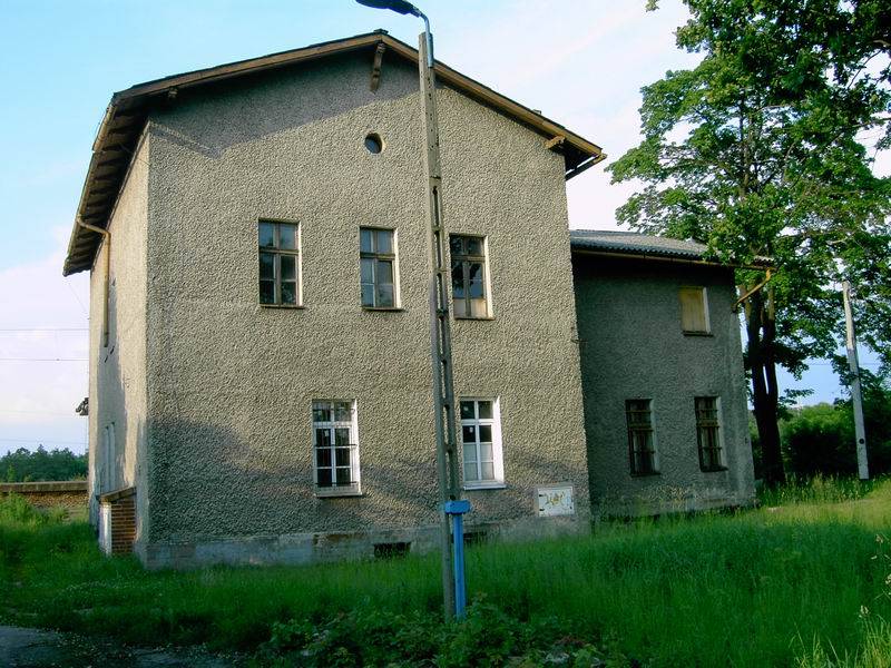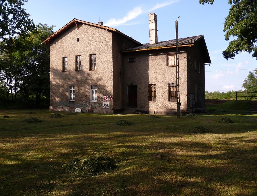 Łaziska Górne Brada, burzony budynek dawnego dworca. Widok od strony ulicy.