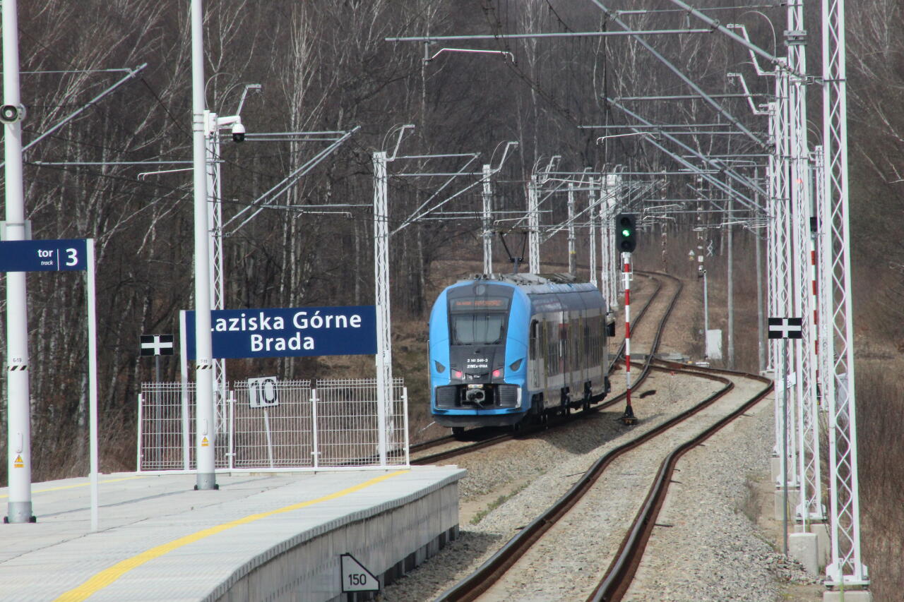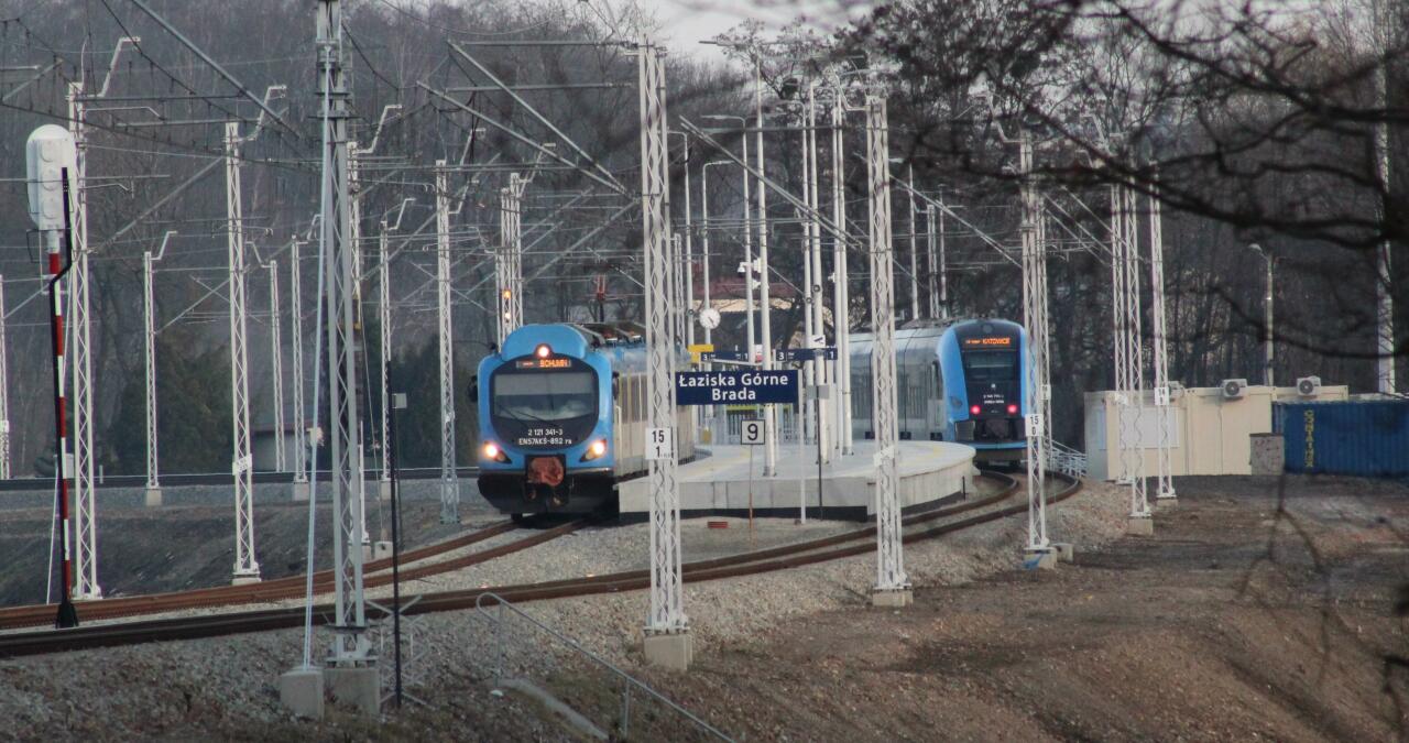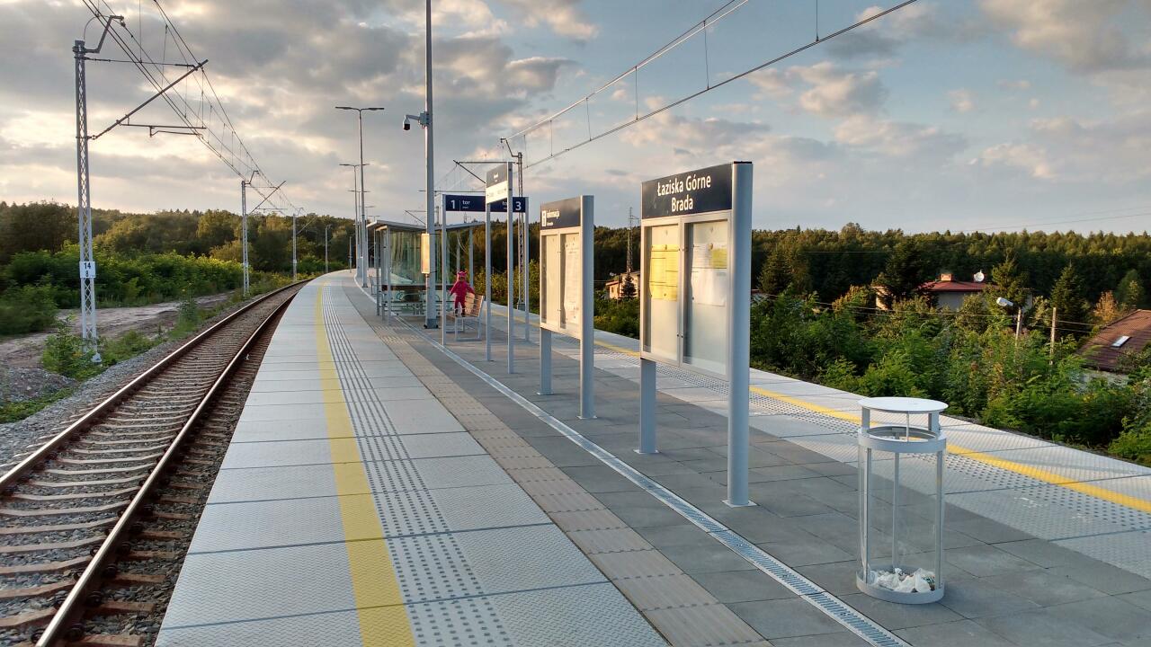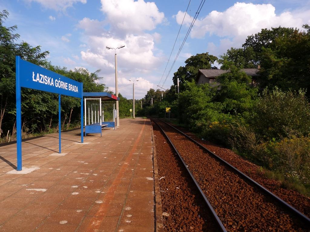 Łaziska Górne Brada, widok w kierunku Katowic. Po lewej przygotowanie terenu pod odbudowę toru.
