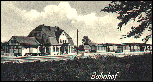 Budynek dworca w 1940 r (Bahnhof Rohnstock). Z lewej budynek dworca z magazynem towarowym, z prawej perony. Widok w kierunku północno-wschodnim: w lewo Bolków/Marciszów, w prawo Jawor, Strzegom.