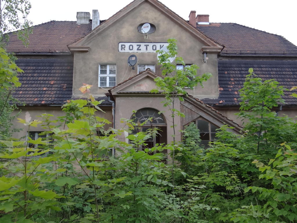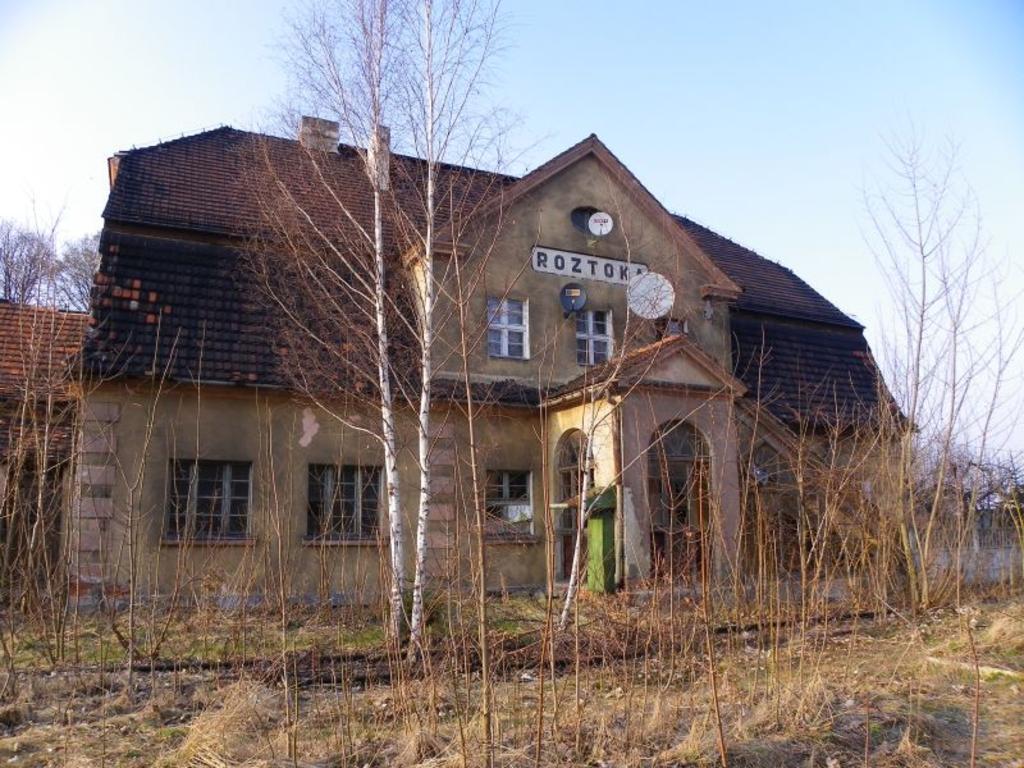 Roztoka. Opuszczona nastawnia dysponująca coraz bardziej niszczeje. Widok w kierunku południowo-wschodnim: w lewo dworzec i perony, w prawo Bolków/Marciszów.