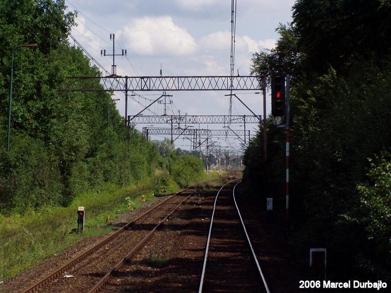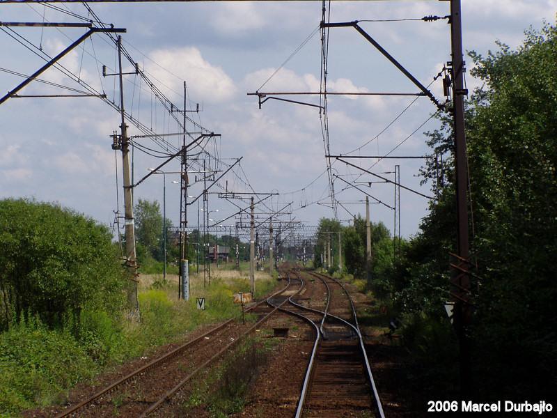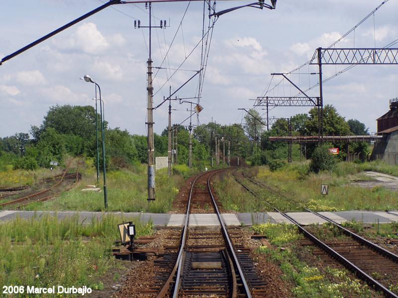 Wschodnia głowica rozjazdowa, po lewej linia z Marciszowa, widok w kierunku Wrocławia.