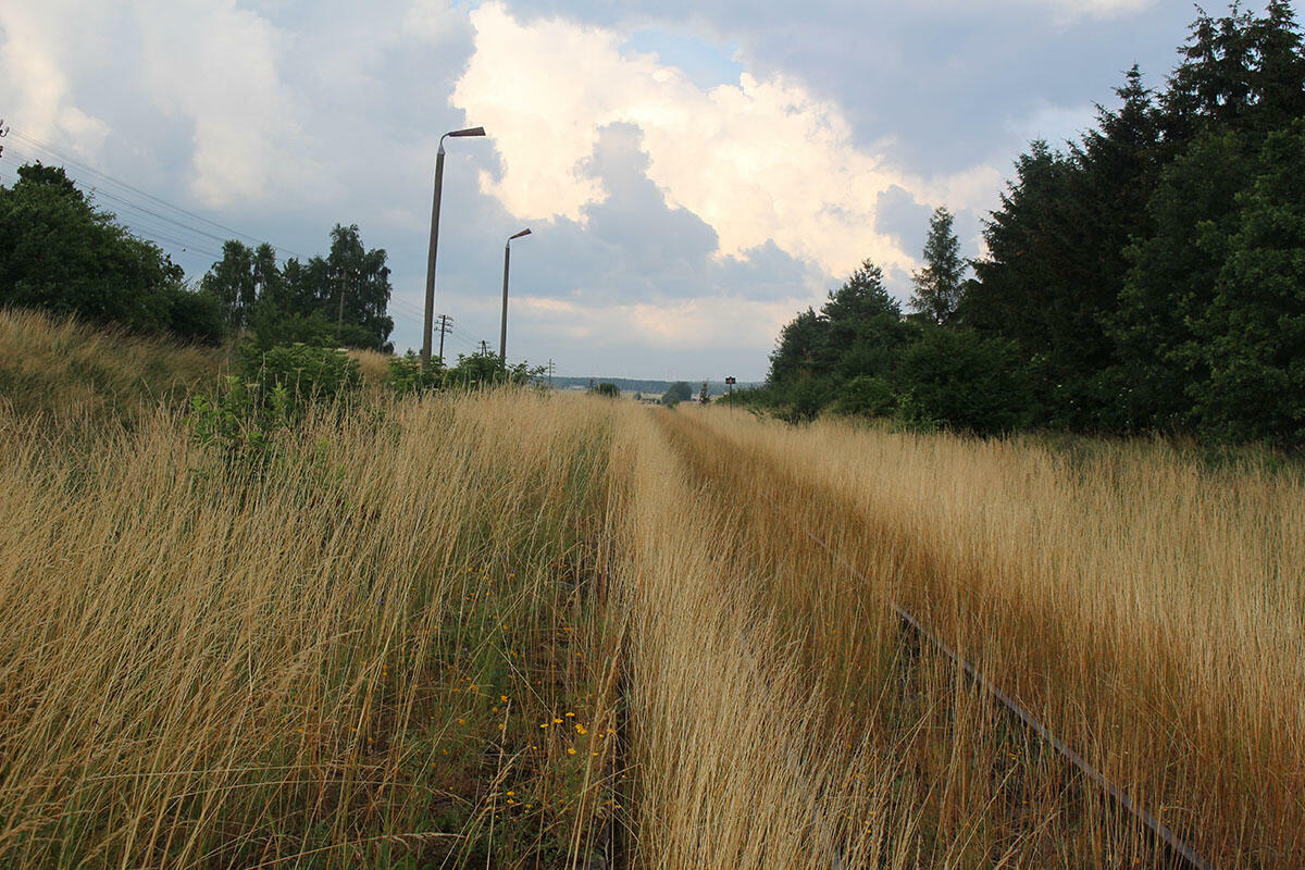 Bocznica rozebrana na początku lat 90-tych. Pamiętam, że w ostatnich latach jej istnienia stały tam wagony towarowe przeznaczone do kasacji. Przystanek powstał w okresie II wojny światowej lub krótko po niej. (info: Jakub Pichola). |