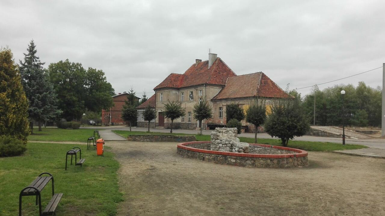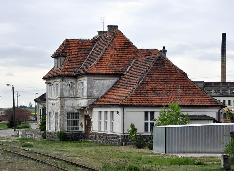 Budynek stacyjny. W prawo kierunek Damasławek w lewo Kcynia. Budynek jest częściowo zamieszkany.