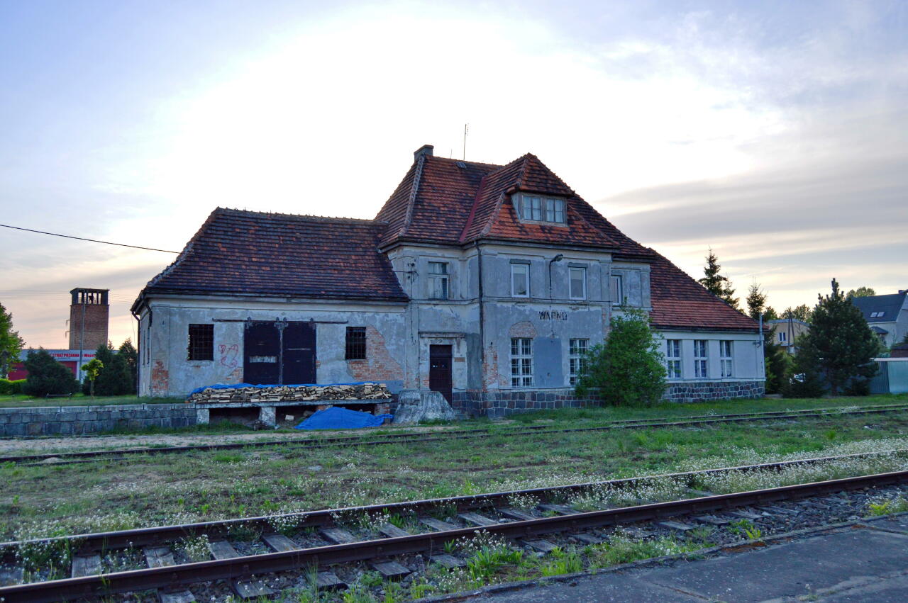 Budynek dworca w Wapnie, widok od strony torów.