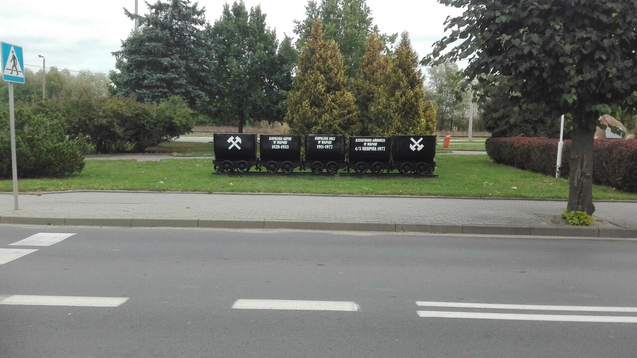Wagoniki upamiętniające górniczą historię miejscowości i jej tragiczny koniec.