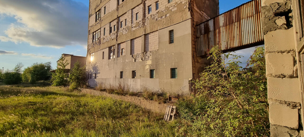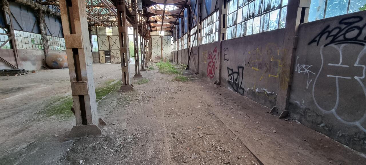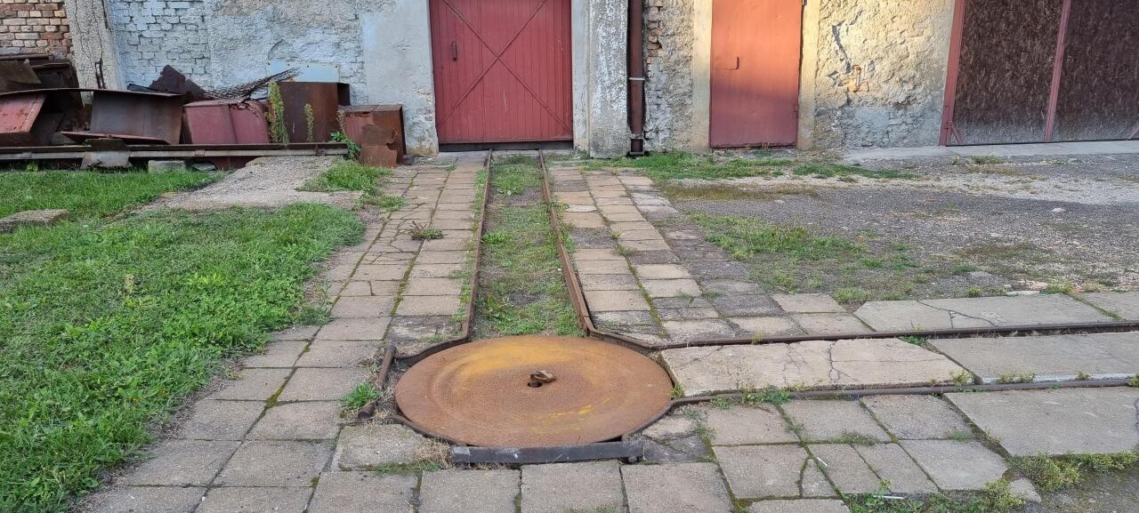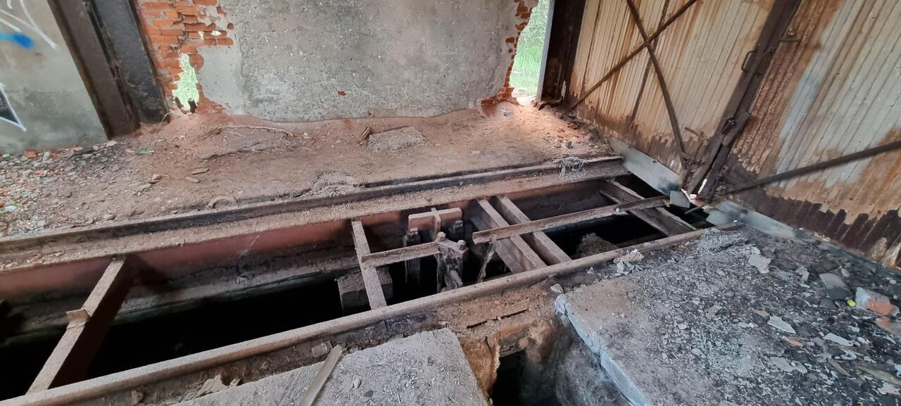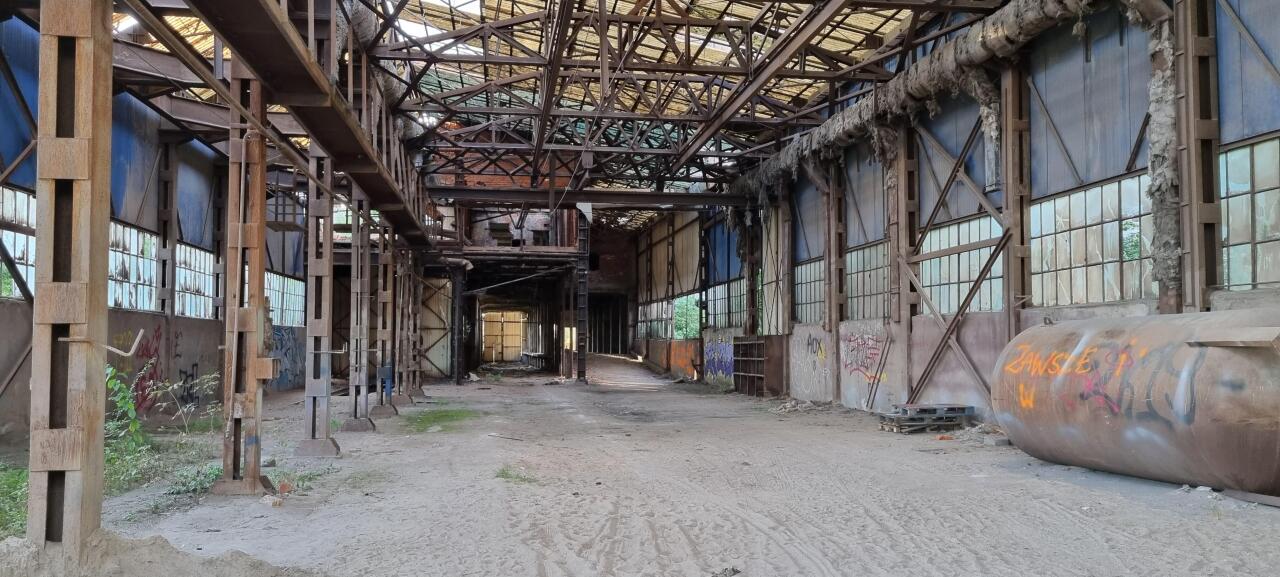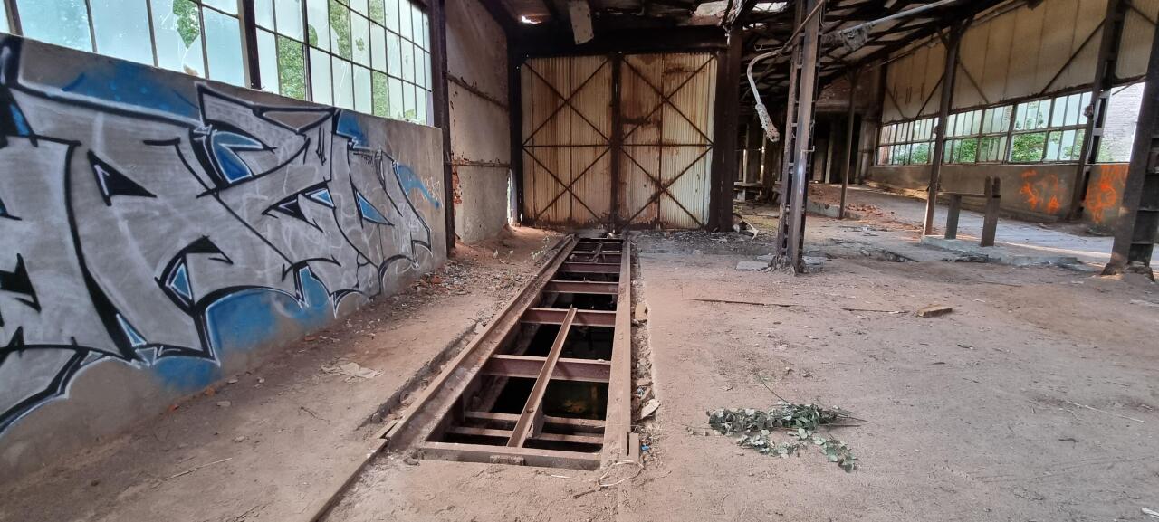 Wapno, na terenie jednej z hal. Widać pozostałości po torze.