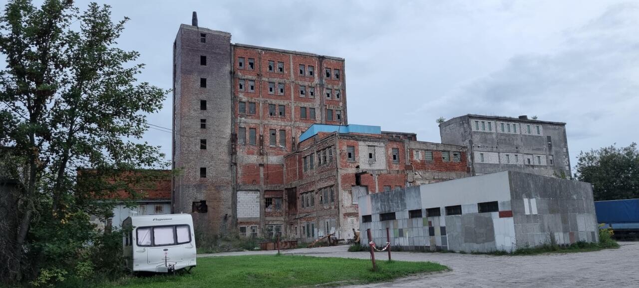 Wapno, teren dawnej kopalni soli. Za tym budynkiem była kiedyś bocznica kolejowa normalnotorowa.