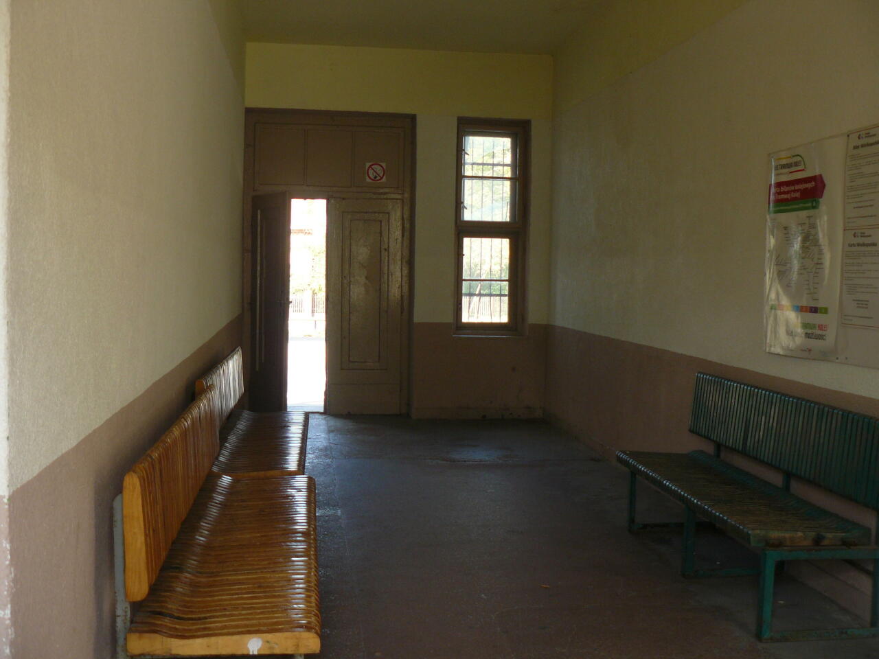 budynki dworcowe: 2019-10-06: Budynek dworca, częściowo adaptowany na cele mieszkalne, mocno podniszczony. Hol dworca czynny, w środku kasy i ławki. (info. Jan Kowalski)