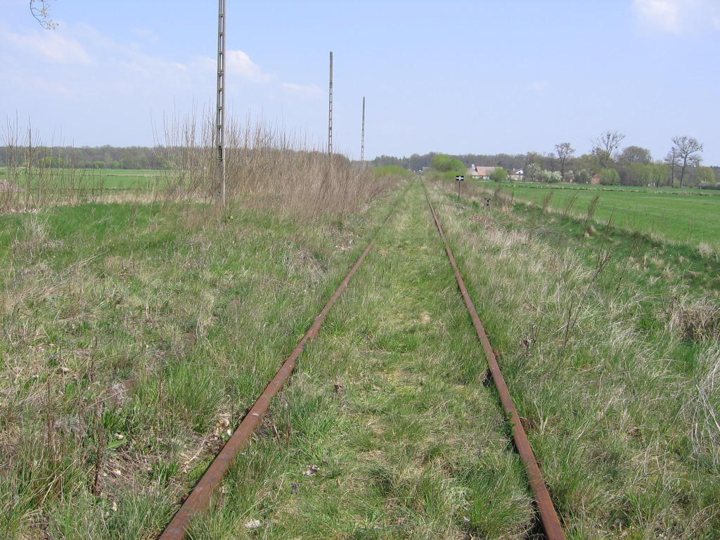 | Opis ogólny: Przystanek z jednym torem i jednym peronem, przy peronie jeszcze wiata /przerdzewiała/. Linia na tym odcinku zarośnięta tylko trawą, także raczej przejezdna. Infrastruktura w opłakanym stanie /brak słupków km, słupów telefonicznych, oznaczeń przejazdów itp./. (info: Grzegorz Szcześko, 2005-05-24) |