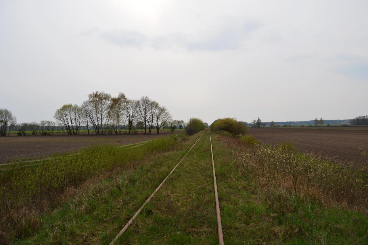 Opis ogólny: Przystanek z jednym torem i jednym peronem, przy peronie jeszcze wiata /przerdzewiała/. Linia na tym odcinku zarośnięta tylko trawą, także raczej przejezdna. Infrastruktura w opłakanym stanie /brak słupków km, słupów telefonicznych, oznaczeń przejazdów itp./. (info: Grzegorz Szcześko, 2005-05-24) |