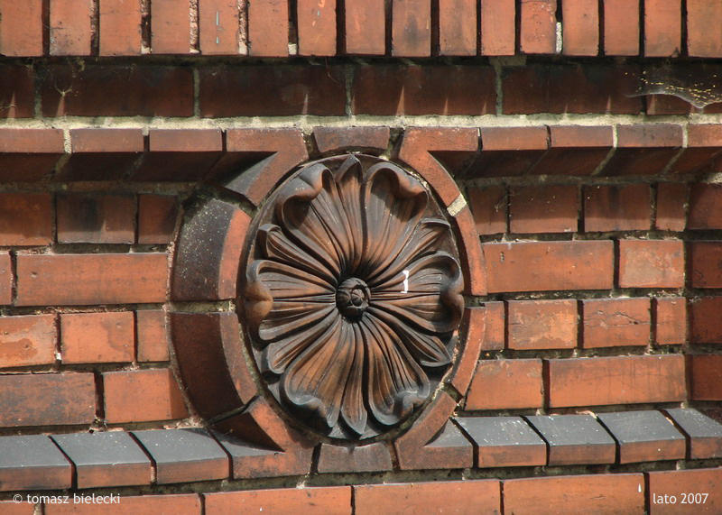 "Nie tylko zwykła cegła". Jak na wielu innych stacyjkach, tak i tu można spotkać ciekawe ceramiczne wykończenia elewacji przy otworach ściennych budynku dworca.
