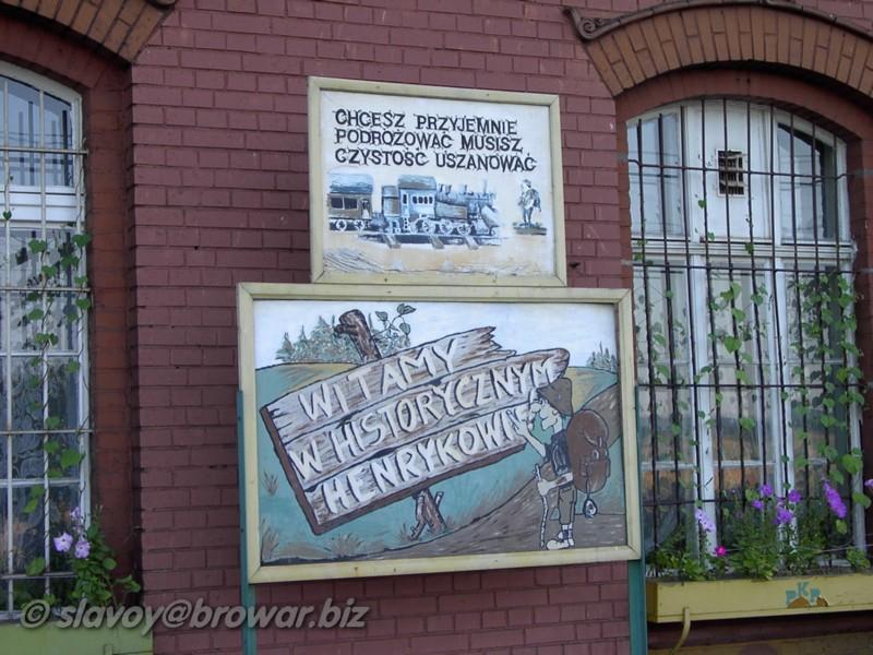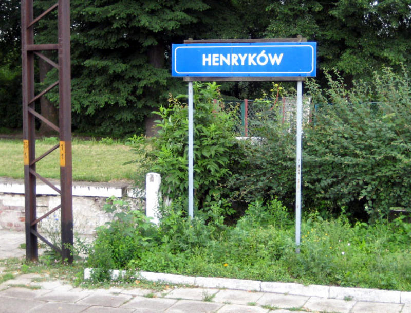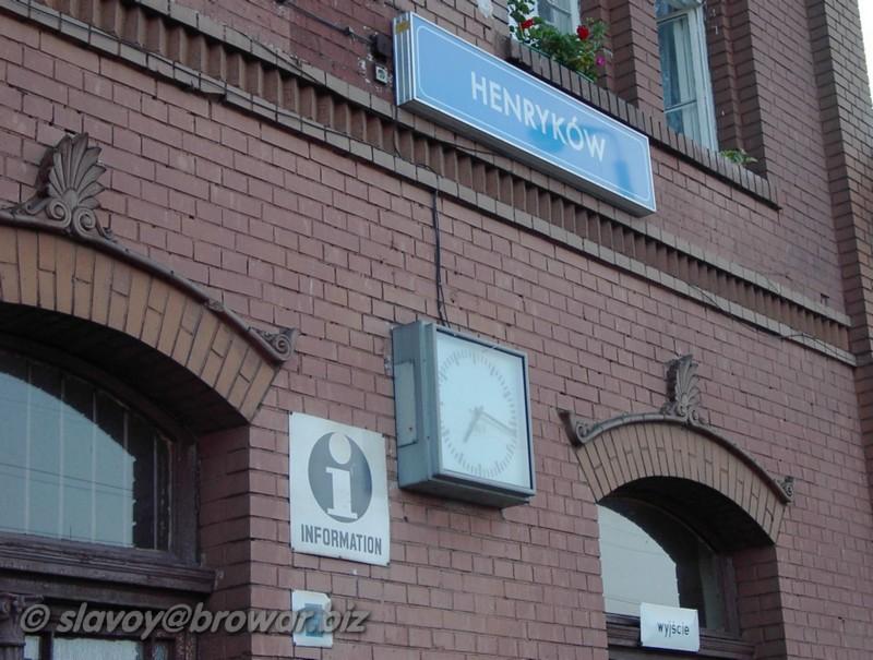 Stacja PKP Henryków. Tablica z nazwą stacji.
