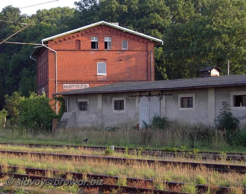 To niestety nie jest zamknięta stacja na nieczynnej linii od 30 lat, tylko budynek magazynu towarowego w Henrykowie. Widok w kierunku zachodnim, od strony torów; w prawo perony, w lewo Kamieniec Ząbkowicki.