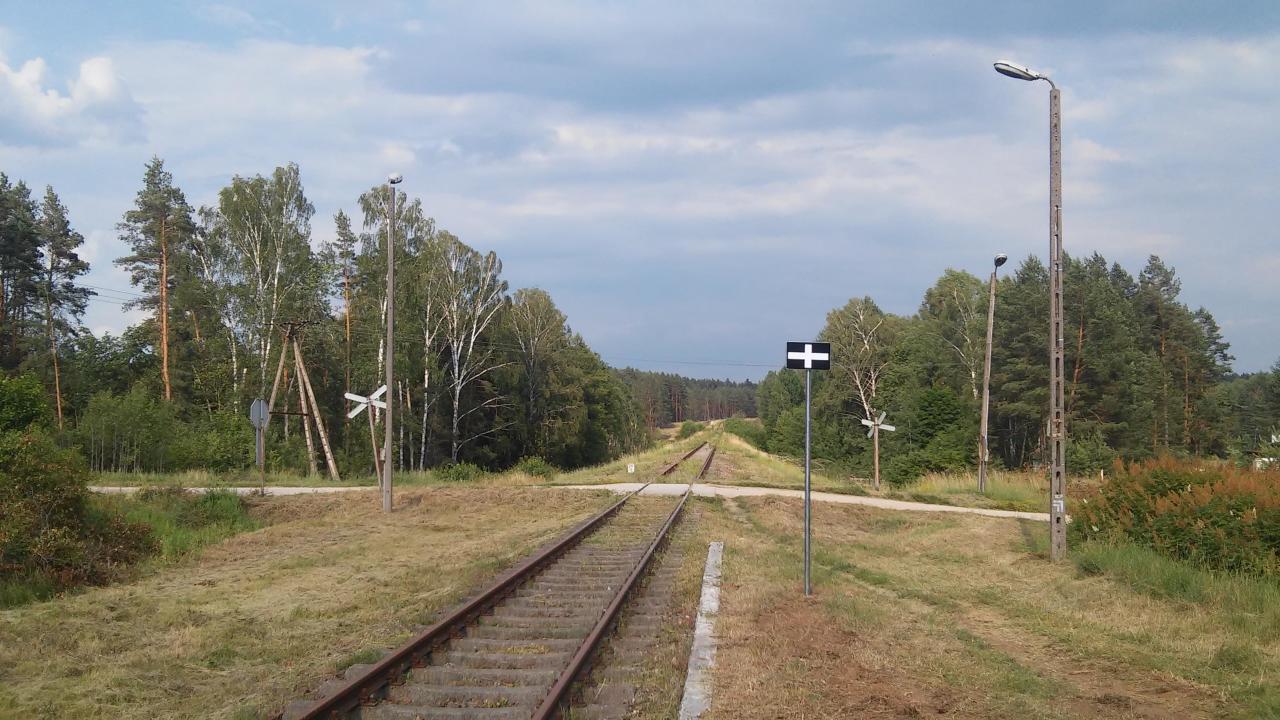Widok z przejazdu w km 26,877 na kierunek do Walił.