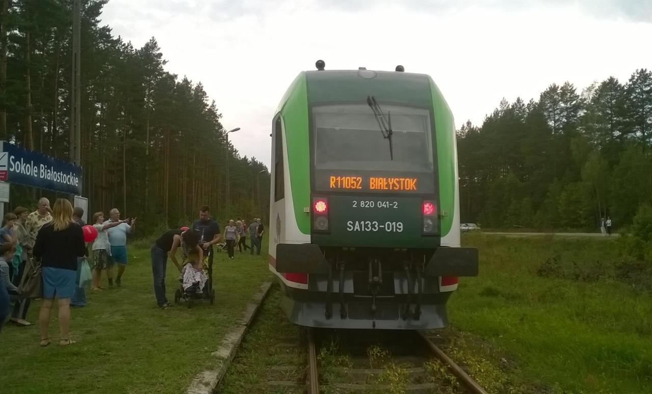 Sokole Białostockie ożyły! Pociąg powrotny do Białegostoku dnia 4 września 2016 roku. W dniach 3-4 września 2016 roku w GOK w Sokolu Białostockim odbyły się (przy okazji Święta Grzyba) uroczystości związane ze 130 leciem Kolei Poleskiej. Linię 37 z Białegostoku do Walił (fragment dawnej Kolei Poleskiej Białystok - Żednia - Wołkowysk - Baranowicze) dzięki wieloletnim staraniom i tytanicznej pracy Pana Andrzeja Kasperowicza z Towarzystwa Przyjaciół Sokola przywrócono do ruchu po 16 latach przerwy. Ruch odbywał się w weekendy w okresie od 2 lipca do 9 października 2016 roku.Wysoka frekwencja daje nadzieję na stałe przywrócenie do ruchu tej pięknej trasy.