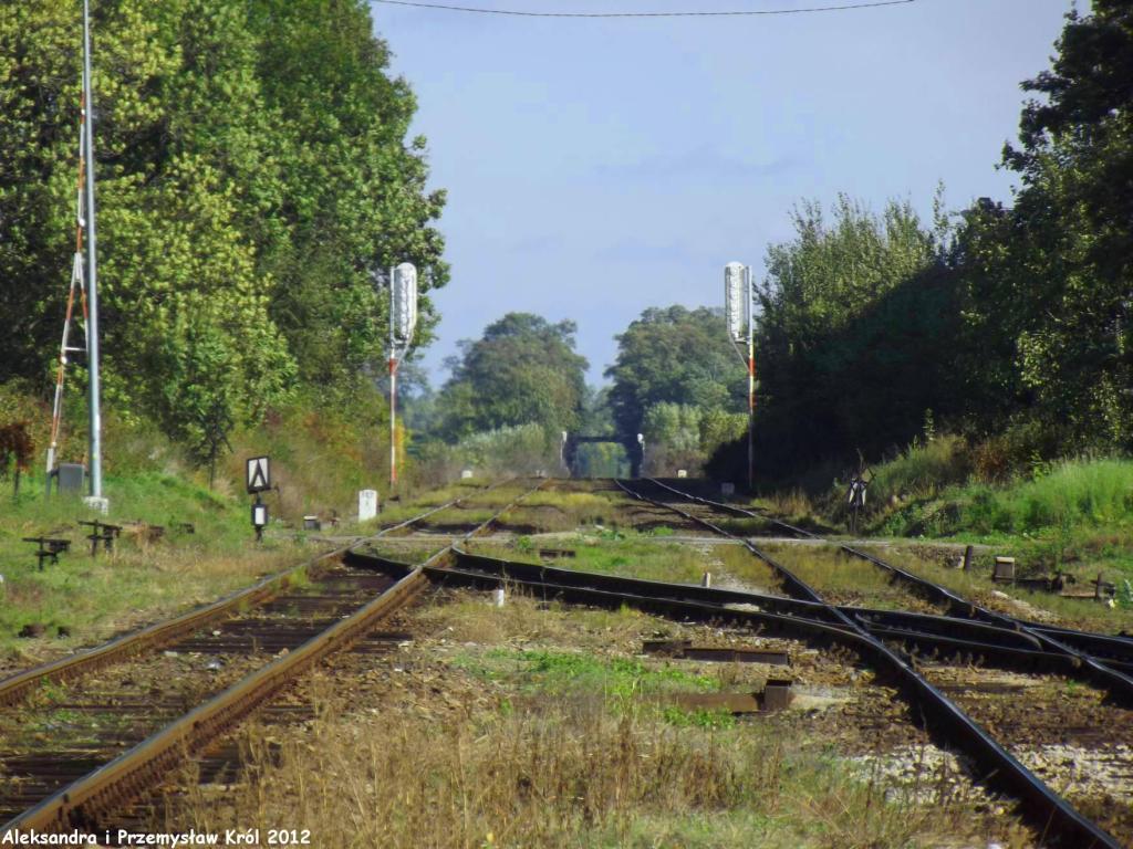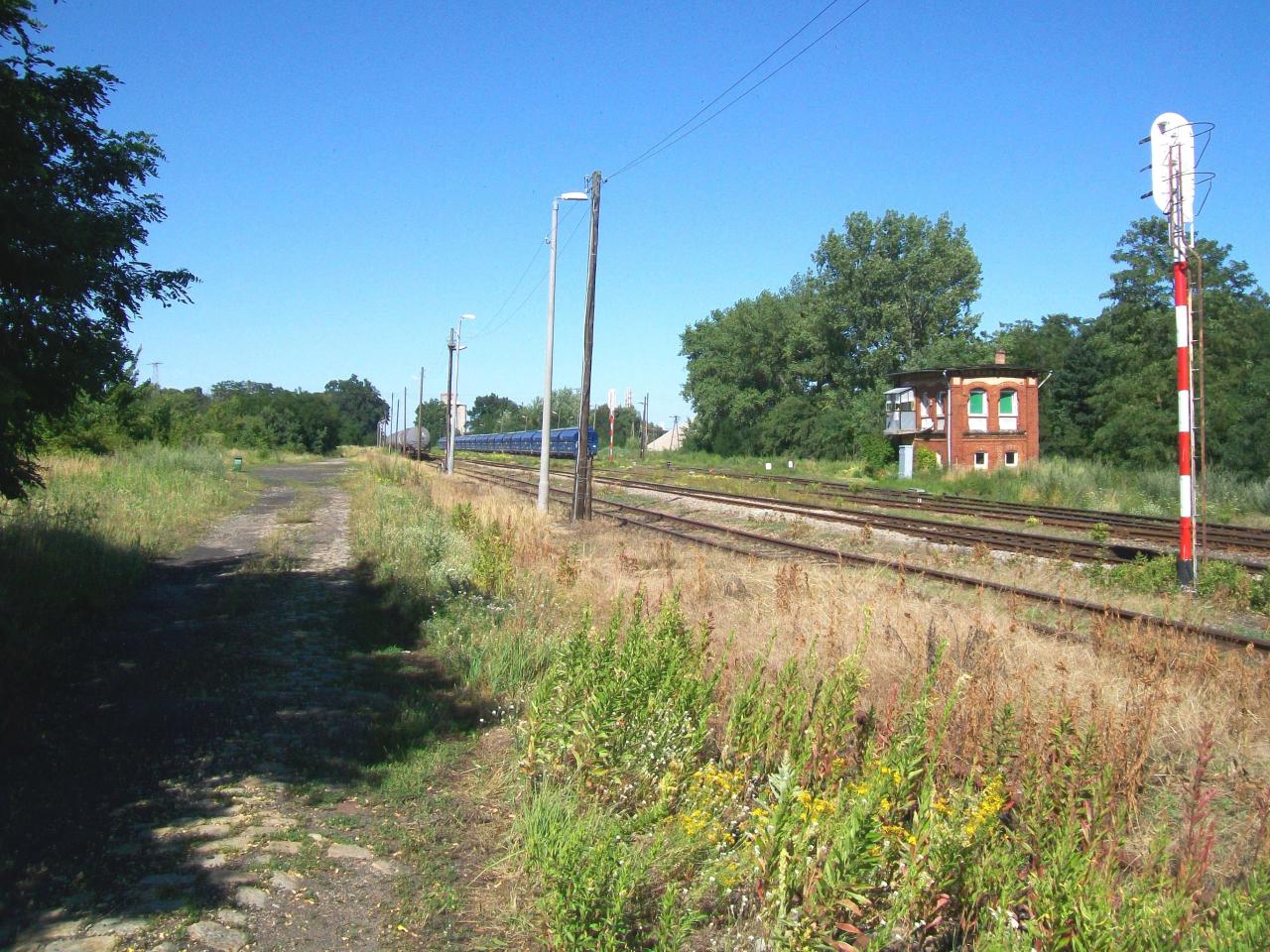 Z lewej strony nieużywany plac ładunkowy i nieczynny tor przebiegający przy nim. Z lewej strony południowo-zachodnia głowica stacyjna, jeden z semaforów wyjazdowych oraz nastawnia wykonawcza Gs1. Widok w kierunku północno-wschodnim (perony, Nysa).