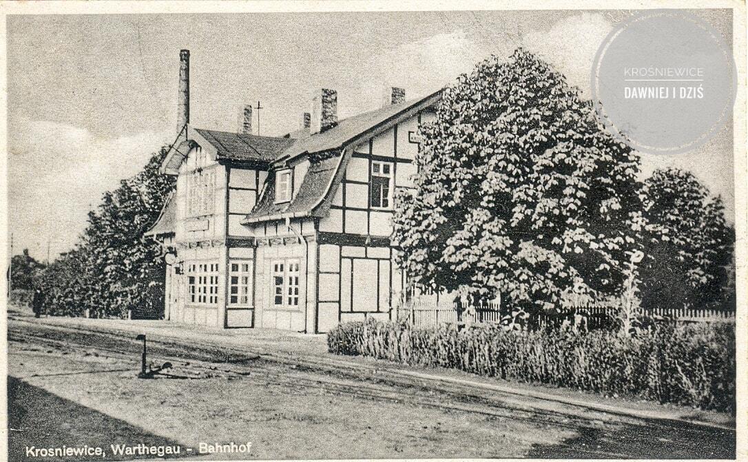 Pocztówka z dworcem w Krośniewicach w czasach aneksji tego terytorium do III Rzeszy - z kolekcji strony FB Krośniewice dawniej i dziś.