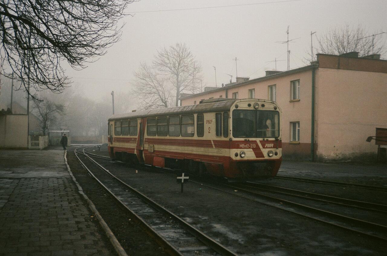 Pociąg MM 728 relacji Krośniewice - Ostrowy Wąsk. obsługiwany wagonem spalinowym MBxd2-219. Widok w kierunku Ozorkowa Wąsk.