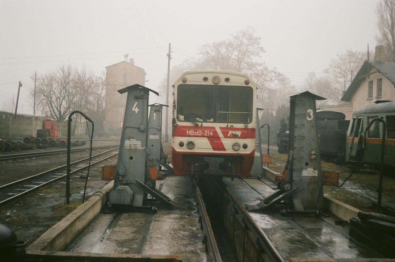 Odstawiony na kanale rewizyjnym wagon spalinowy MBxd2-214, służący jako dawca części zamiennych.