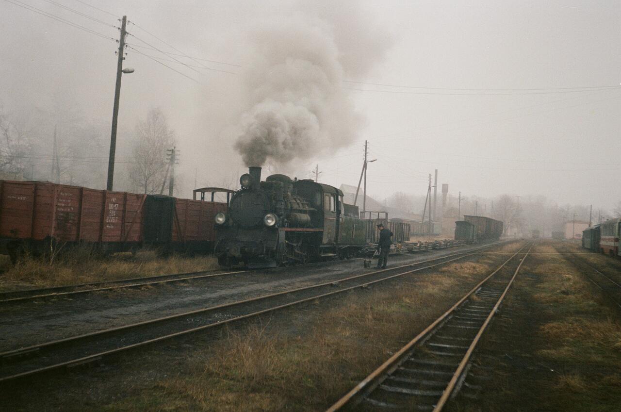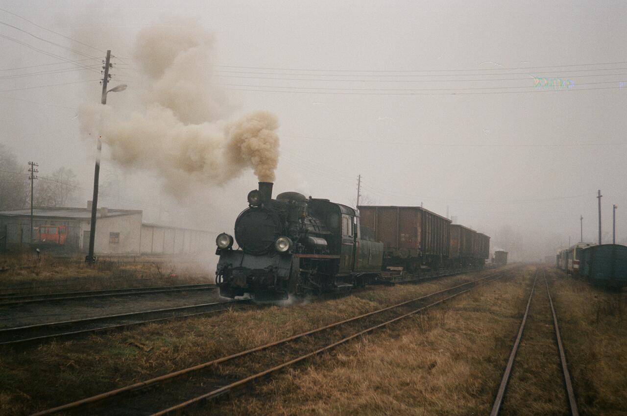 Parowóz Px48-1912 - manewry stacyjne. Widok w kierunku stacji Ozorków Wąsk.