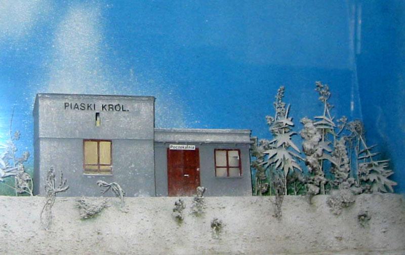 Niegdysiejsza stacja końcowa sochaczewskiej wąskotorówki. Przy stacji w Piaskach istniała niegdyś smolarnia, skład drewna oraz duży tartak, zamknięty w 1959 r. 2005-01: Za stacją kilka ubytków szyn (długości 15-200m). Efekt wysokiej ceny złomu. (info: Mikołaj Chmielewski). |
