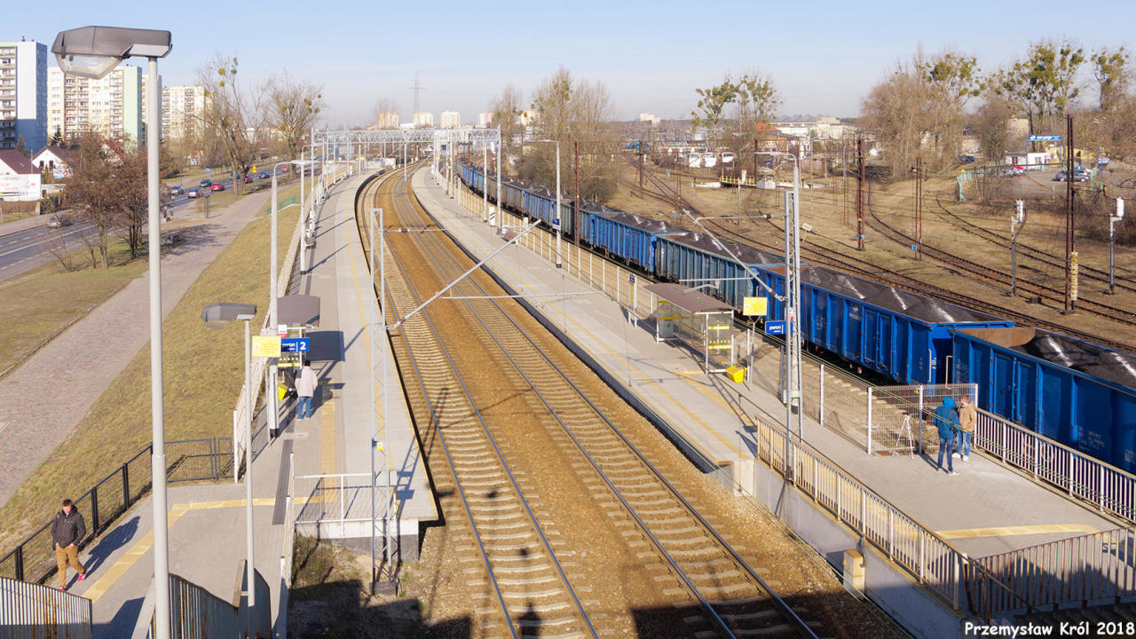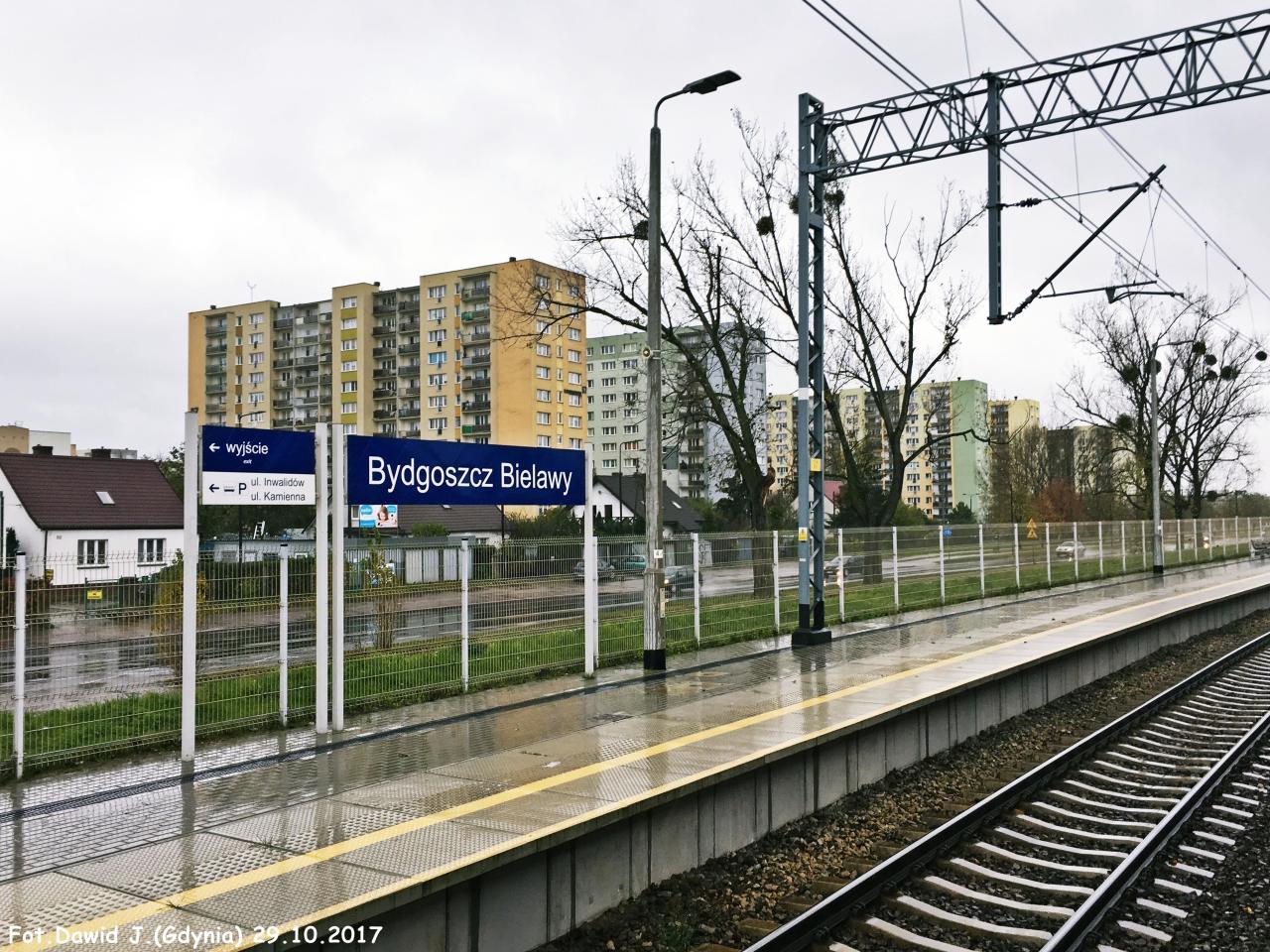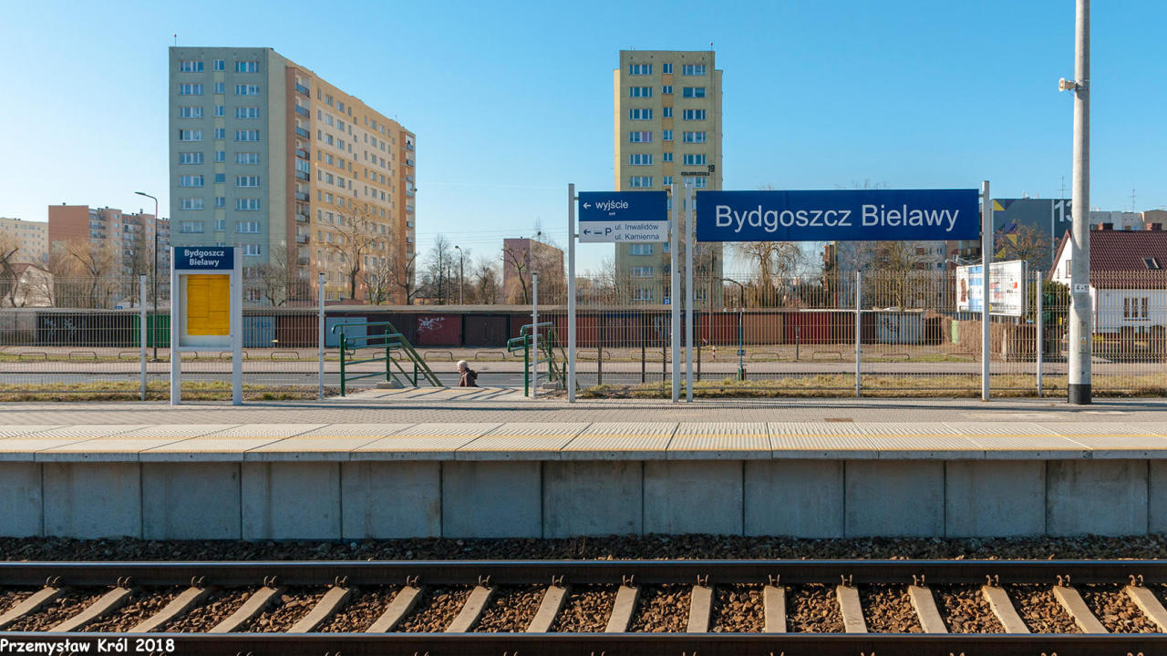 Przystanek Bydgoszcz Bielawy w całej okazałości. Widok w kierunku Bydgoszczy Głównej i Maksymilianowa.