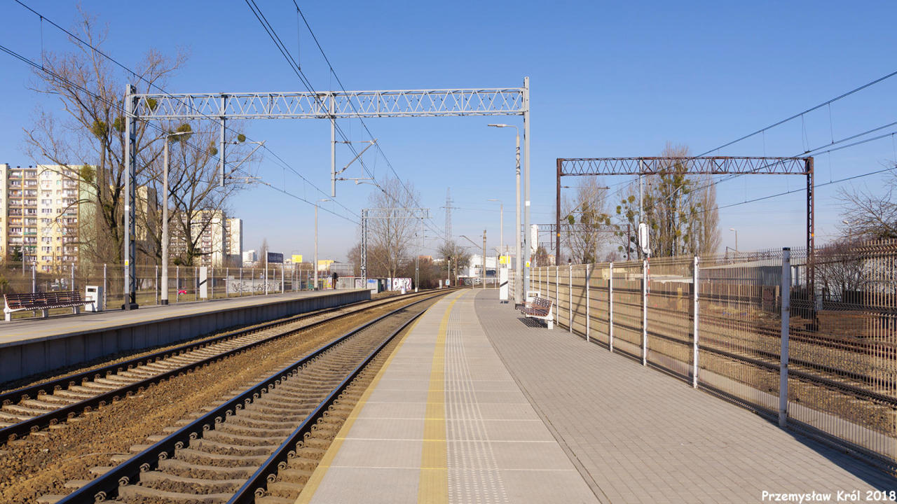 Przystanek kolejowy Bydgoszcz Bielawy. Widok w kierunku Bydgoszczy Głównej i Maksymilianowa.