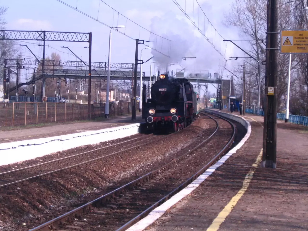 Przejazd pociągu okolicznościowego. Parowóz Pm36-2. 14.04.2014. Widok w kierunku Bydgoszczy Wschód.