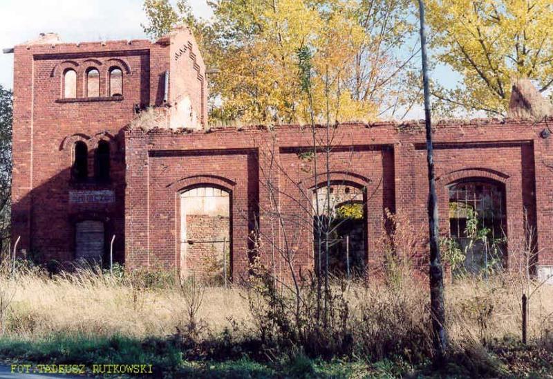 wieża wodna: | Wieża wodna stoi u zbiegu ulic Wrocławskiej i Dębowej, przy przejeździe kolejowym w ul. Wrocławskiej, ok. 400 m. na pn od nieczynnej stacji kolejowej, wieża a raczej mury po niej, (zbiornik wodny został zdemontowany i wywieziony po zdjęciu dachu). Do wieży przylega budynek b. parowozowni, obydwa budynki mają nowe dachy i są adaptowane do celów mieszkalnych. (info: Bolesław Wojtyniak, 09-11-2008). | |