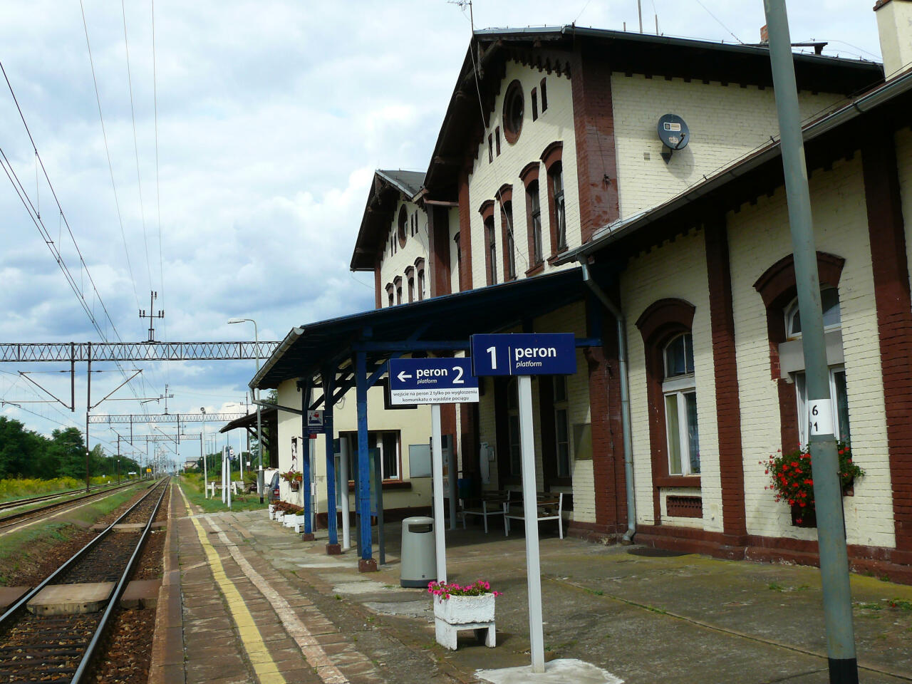 2017: Tor dodatkowy został odremontowany i prawdopodobnie znów jest w użyciu. W północnej części stacji znajdowała się grupa torów towarowych z czego 1 był torem przy placu ładunkowym natomiast 3 stanowiły punkt zdawczo odbiorczy dla położonego tuż za przejazdem kolejowym magazynu płodów rolnych. Gdzieś w latach 90-tych (nie wiem dokładnie kiedy, szacuję że w połowie) zaprzestano użytkowania bocznicy do elewatora, została ona zdemontowana a szyny na przejeździe zostały zaasfaltowane. Pozostał jednak wyraźny ślad w terenie, rampa ładunkowa oraz kozioł oporowy. W związku z odejściem tak istotnego dla stacyjki generatora przewozów, ruch towarowych spadł w okolice 0 co dobrze widać po stanie torowiska byłej "grupy towarowej". (info: wasiukibic, 2007-12-20) |