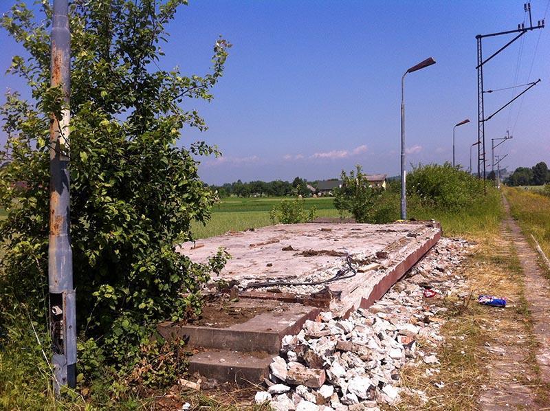budynki dworcowe: | 08.06.2014r. budynek stacji został rozebrany, dość niedokładnie, bo zostało trochę gruzu. (info: Kamil Książek, 17-06-2014) | |