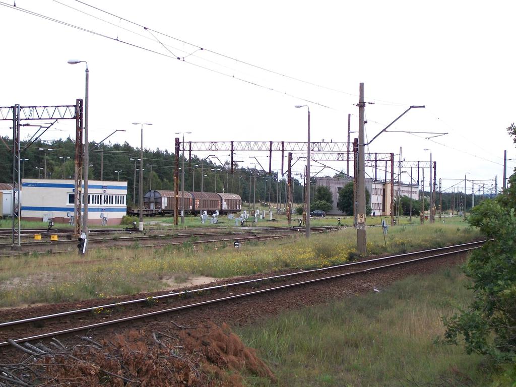 Widok na towarową część stacji od strony wjazdu ze stacji Świnoujście.