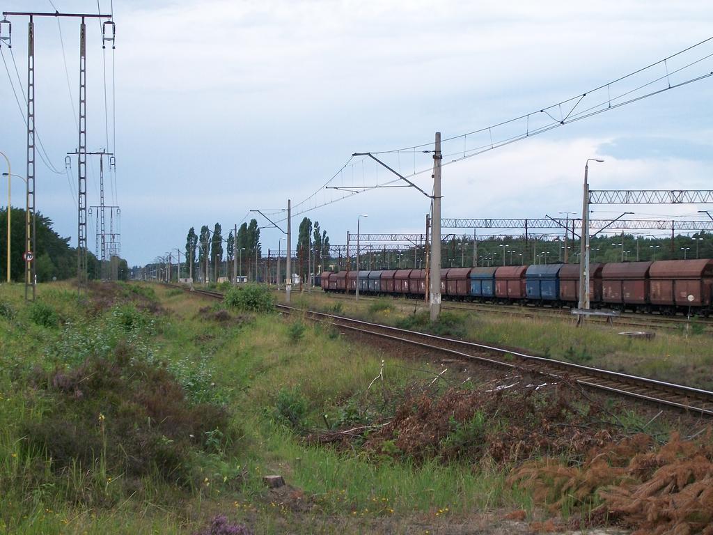 Widok w kierunku Wysokiej Kamieńskiej/Szczecina z miejsca przejazdu kolejowo-drogowego kat. A. Widoczna górka rozrządowa z piękną tarczą rozrządową.