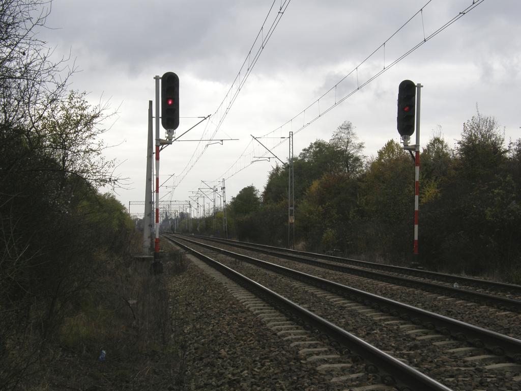 Semafory wjazdowe stacji Baby od strony Koluszek. Widok w kierunku Piotrkowa Trybunalskiego. 128,4 km.