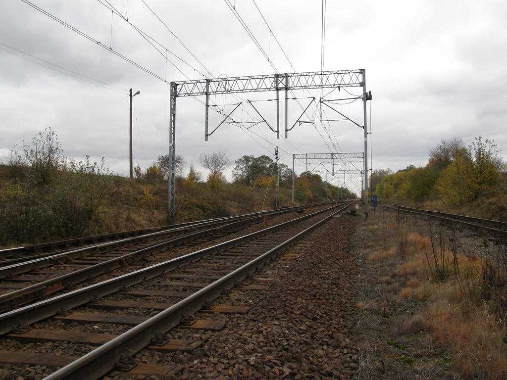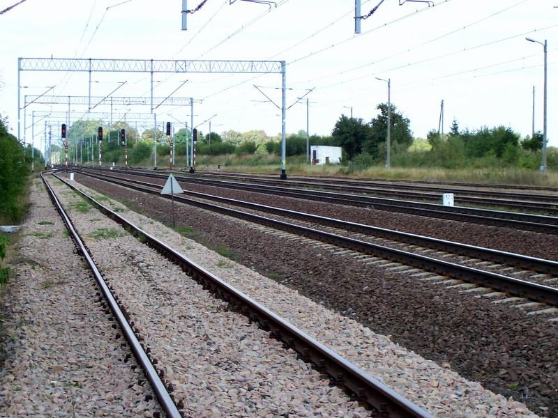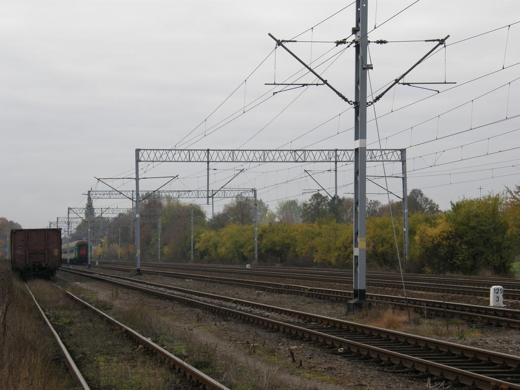 Tory stacyjne. Widok w kierunku Piotrkowa Trybunalskiego. 129,3 km.