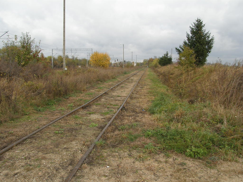 Bocznica na plac ładunkowy i do składu opału. Widok w kierunku Piotrkowa Trybunalskiego. 129,2 km.