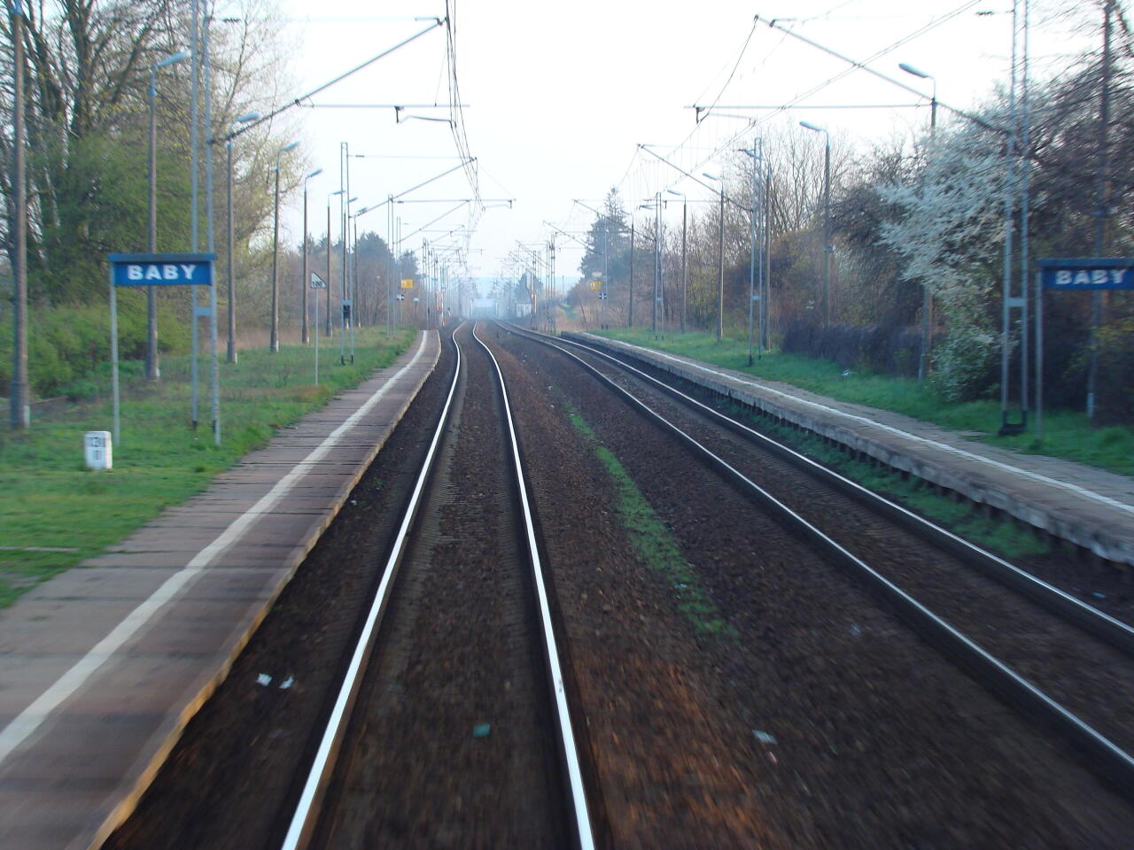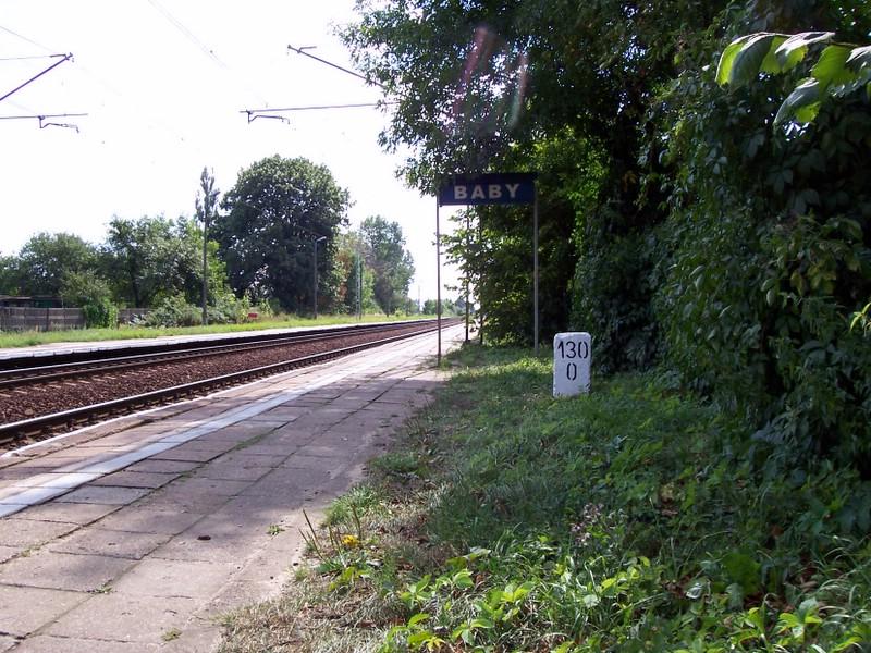 Baby. Stacja, po prawej stronie, w tle nastawnia "B". Widok w stronę Piotrkowa.