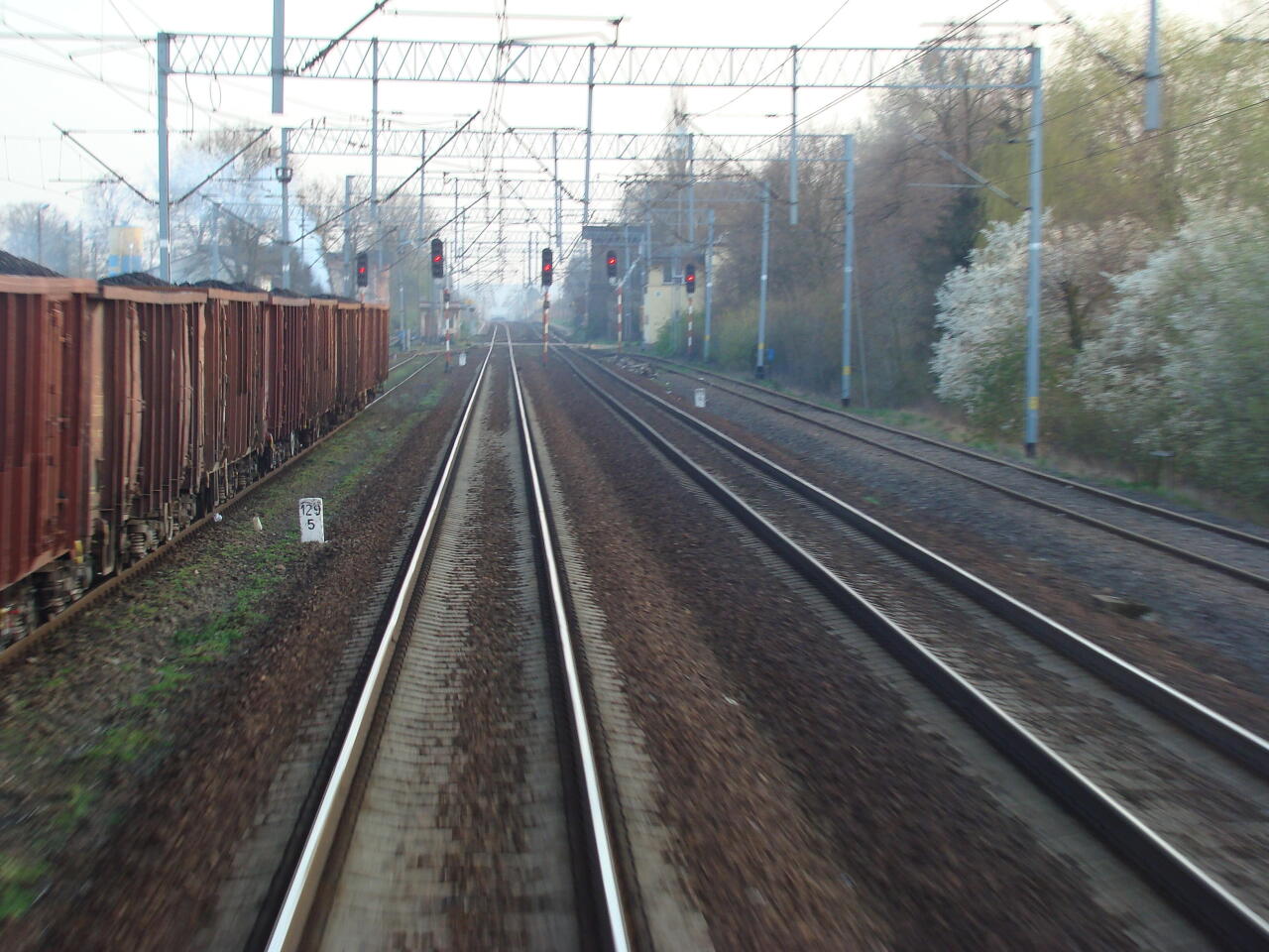Bocznica do składu opału. Widok w kierunku Piotrkowa Trybunalskiego. 129,3 km.