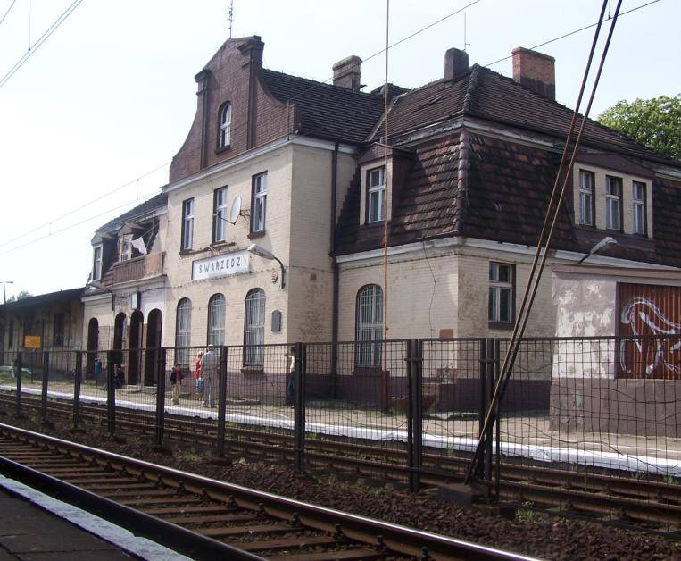 Stacja kolejowa w Swarzędzu, to stacja węzłowa znajdująca się na wjeździe do Poznańskiego Węzła Kolejowego od strony Konina. Według klasyfikacji PKP ma kategorię dworca aglomeracyjnego. Przez stację przechodzą 3 linie (3, 352, 805). Przez stację przejeżdżają pociągi towarowe (kierując się ze wschodu do Poznania Franowa), osobowe, TLK, InterCity, Express InterCity, EuroCity, EuroNight. W latach 80. XIX wieku zaczęto budowę linii kolejowej z Poznania do Strzałkowa. Pierwszy pociąg przejechał 1 sierpnia 1887. Początkowo stacja nosiła niemiecką nazwę Schwersenz, po odzyskaniu niepodległości zmieniono ją na Swarzędz. Podczas trwania II wojny światowej był to znów Schwersenz (1939-1940), później (1940-1943) Schwaningen, zaś w 1943 powrócono do nazwy Schwersenz. Od 1945 jest to ponownie Swarzędz. W 2008 stacja przeszła gruntowną modernizację która objęła budowę całkowicie nowych peronów, przebudowę czterech torów oraz dwie głowice rozjazdowe oraz wybudowanie ekranów akustycznych co umożliwiło poruszanie się z maksymalną prędkością 140 km/h na wprost (z ograniczeniem do 120 km/h na łuku za stacją w kierunku Poznania Antoninka) oraz 60 km/h i 100 km/h na kierunek zwrotny. Podczas modernizacji zlikwidowano również nastawnię Sw (od strony Poznania) a obecnie istniejącą Sw1 wyposażono w urządzenia komputerowe typu Ebilock 950 i jest sterowana przez LCS Poznań. W latach 2012-2013 budynek dworca przeszedł generalny remont. W budynku prócz kasy Kolei Wielkopolskich mieści się Swarzędzkie Centrum Ratunkowe (Referat Zarządzania Kryzysowego i Ochrony Przeciwpożarowej Urzędu Miasta i Gminy Swarzędz, straż miejska, pogotowie ratunkowe, ochotnicza straż pożarna). W 2013 wyburzono stary magazyn przylegający do dworca, a w 2014 rozpoczęto budowę garaży na potrzeby pojazdów centrum. W 2018r. działać zaczęła Poznańska Kolej Metropolitalna, dzięki czemu zwiększono częstotliwość kursowania pociągów, również przejeżdżających przez Swarzędz. Podczas modernizacji Poznańskiego Węzła Kolejowego na stacji Swarzędz zatrzymywał się IC Chrobry (obecny EIC Chrobry). W 2010 również swój postój miał tu TLK relacji Poznań Główny - Warszawa Wschodnia - Poznań Główny. Od grudnia 2014 do końca sierpnia 2015 na stacji zatrzymywały się 3 pary pociągów Interregio: 2 pary relacji Warszawa Wschodnia - Szczecin Główny (sezonowo jedna para wydłużona do Świnoujścia) oraz 1 para Poznań Główny - Warszawa Wschodnia. 2021-03 Teraz zatrzymuje się tu 7 par IC. |