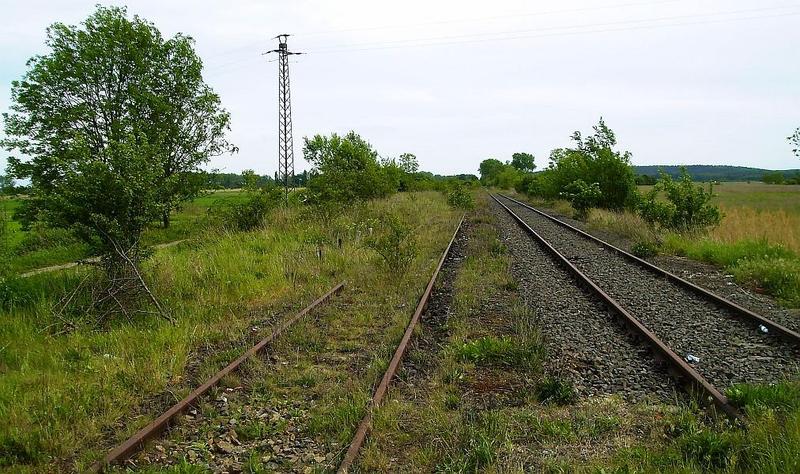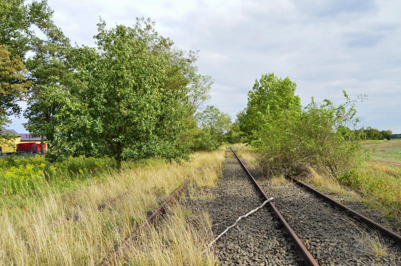 Opuszczony przystanek w Gubinku. Pociągi pasażerskie z Lubska przestały tu kursować kilka lat wcześniej. Widok tamże (południowy-wschód).