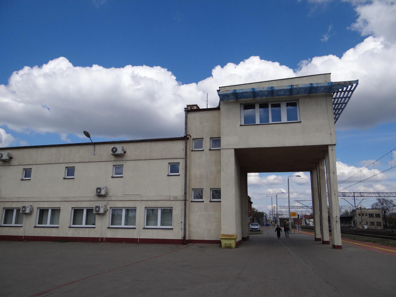 | wieża wodna: | Nieczynna wieża wodna stoi ok. 300 m. na południe od wejścia do budynku dworca, powstała w latach powojennych, ma dwa zbiorniki. Na dachu zamontowano anteny telefonii komórkowej. Podobne, typowe wieże stoją m.in. na stacjach Brzeg, Orneta, Leszno czy Poznań Kobylepole. Na dwóch starych pocztówkach sprzed 1918 r. i 1941 r. są widoczne dwie inne wieże, istniejąca wieża stoi w podobnym miejscu co poprzednie. (info: Bolesław Wojtyniak, 12-01-2010). | |