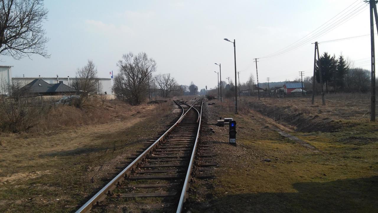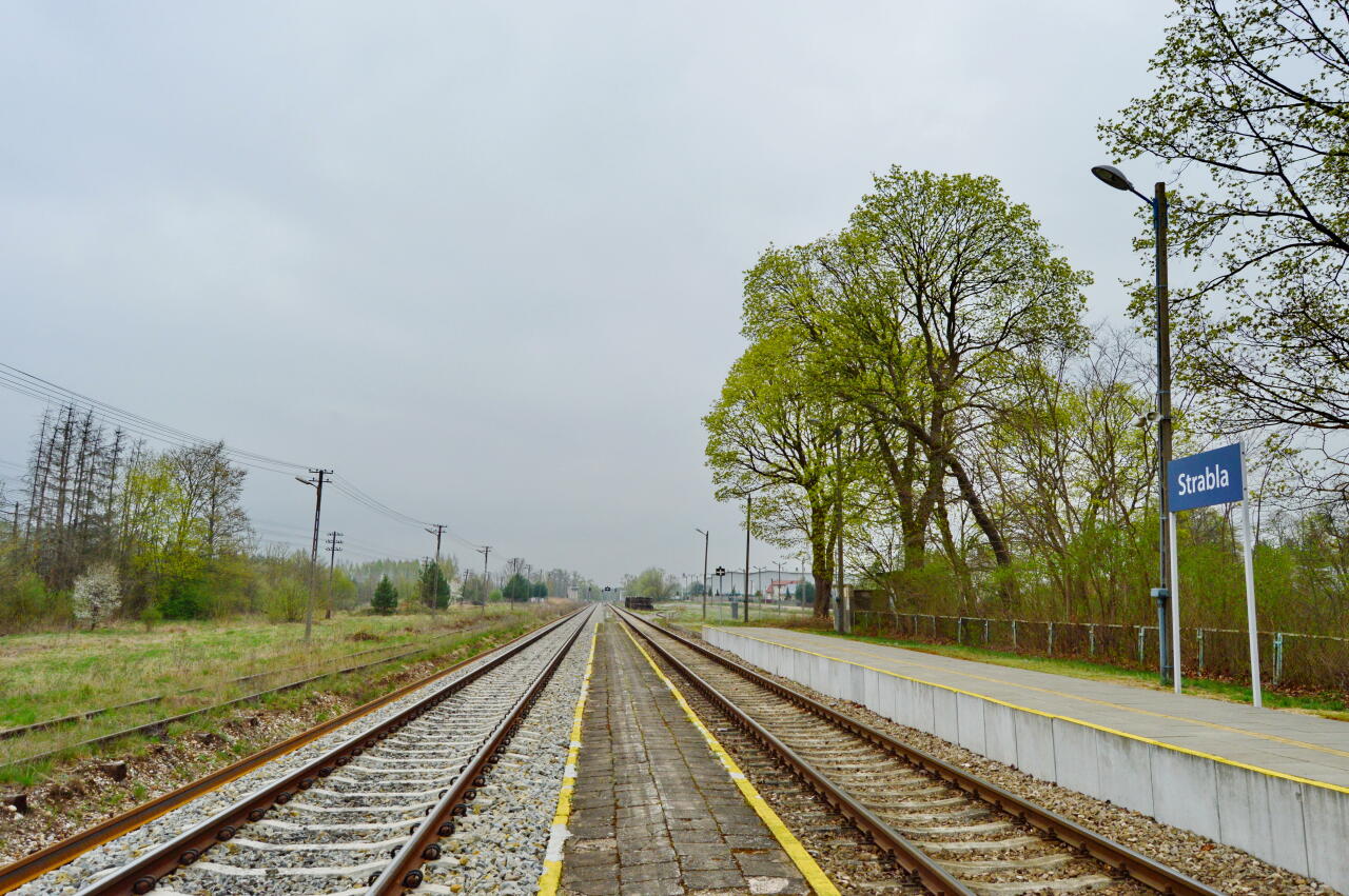 Strabla. Widok z peronu 2 w kierunku Białegostoku. Po prawej stronie peron 1.